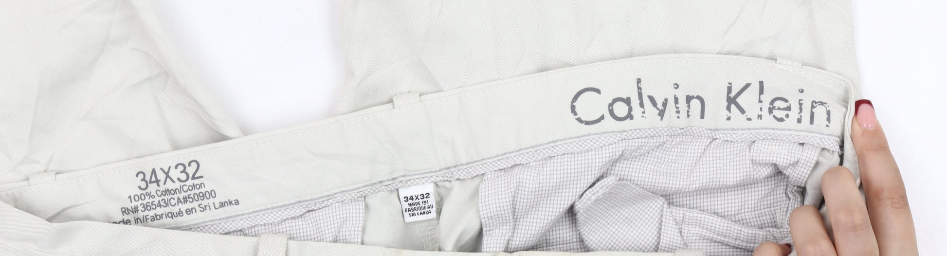 Calvin Klein Men’s Beige Chino Trousers 34x32 Regular Fit Straight Leg