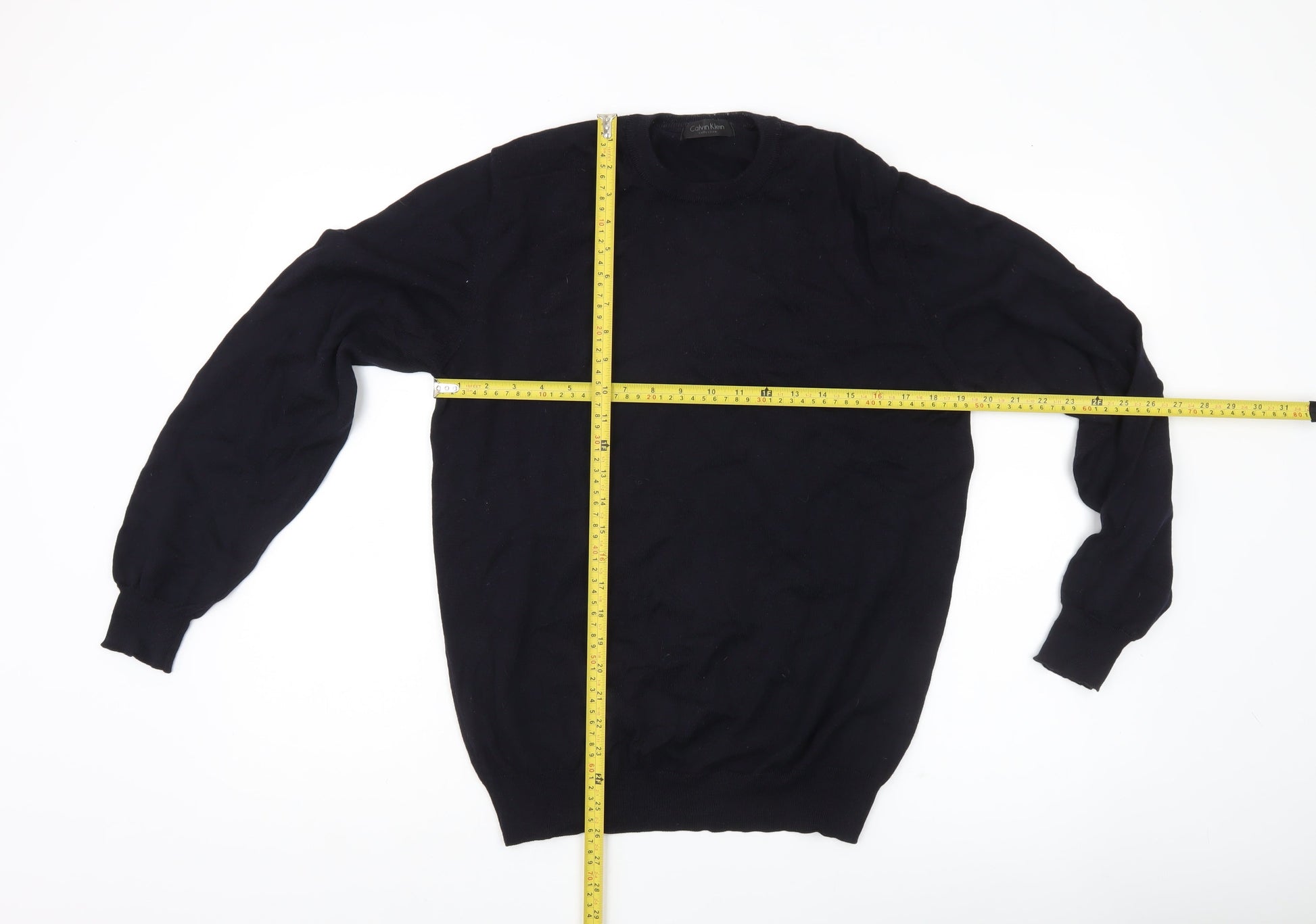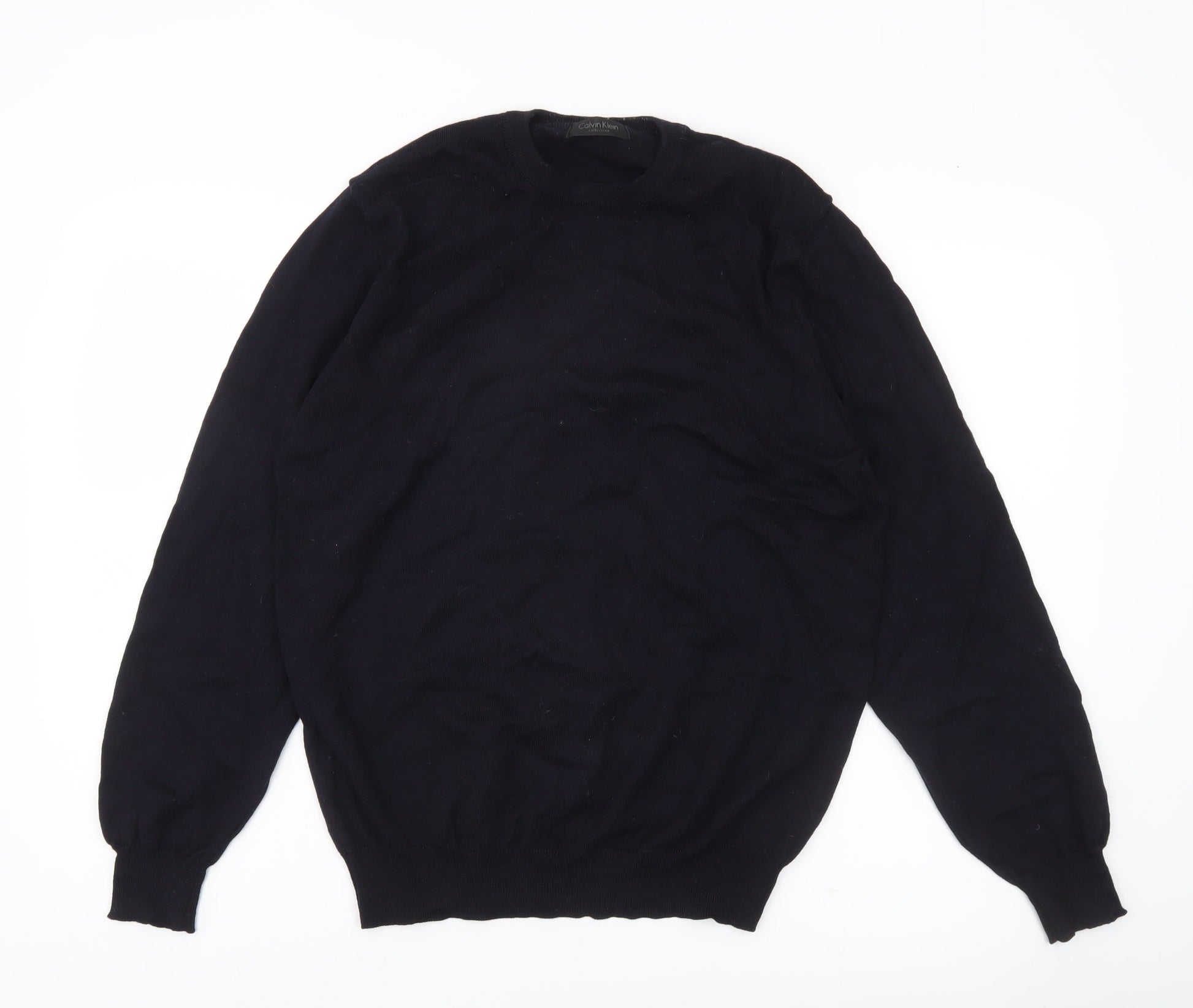 Calvin Klein Men’s Black Wool Jumper Size L Crew Neck Pullover