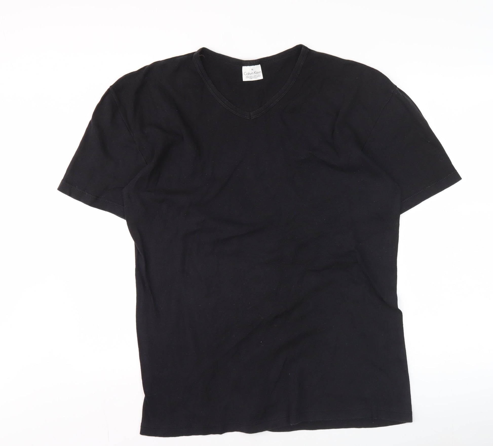Calvin Klein Men's Black Cotton V-Neck T-Shirt XL Regular Fit