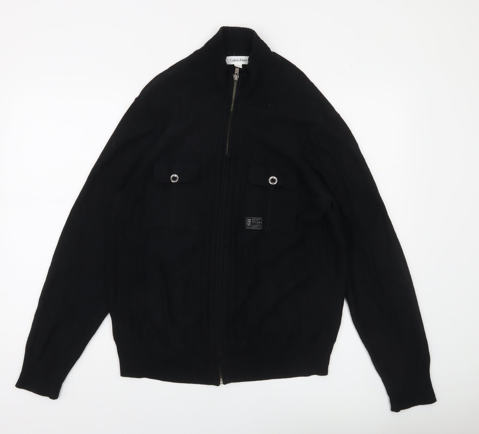 Calvin Klein Men's Black Full Zip Cotton Jumper Size S