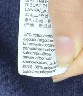 - Material Breakdown: 57% Cotton 38% Polyester 5% Elastane