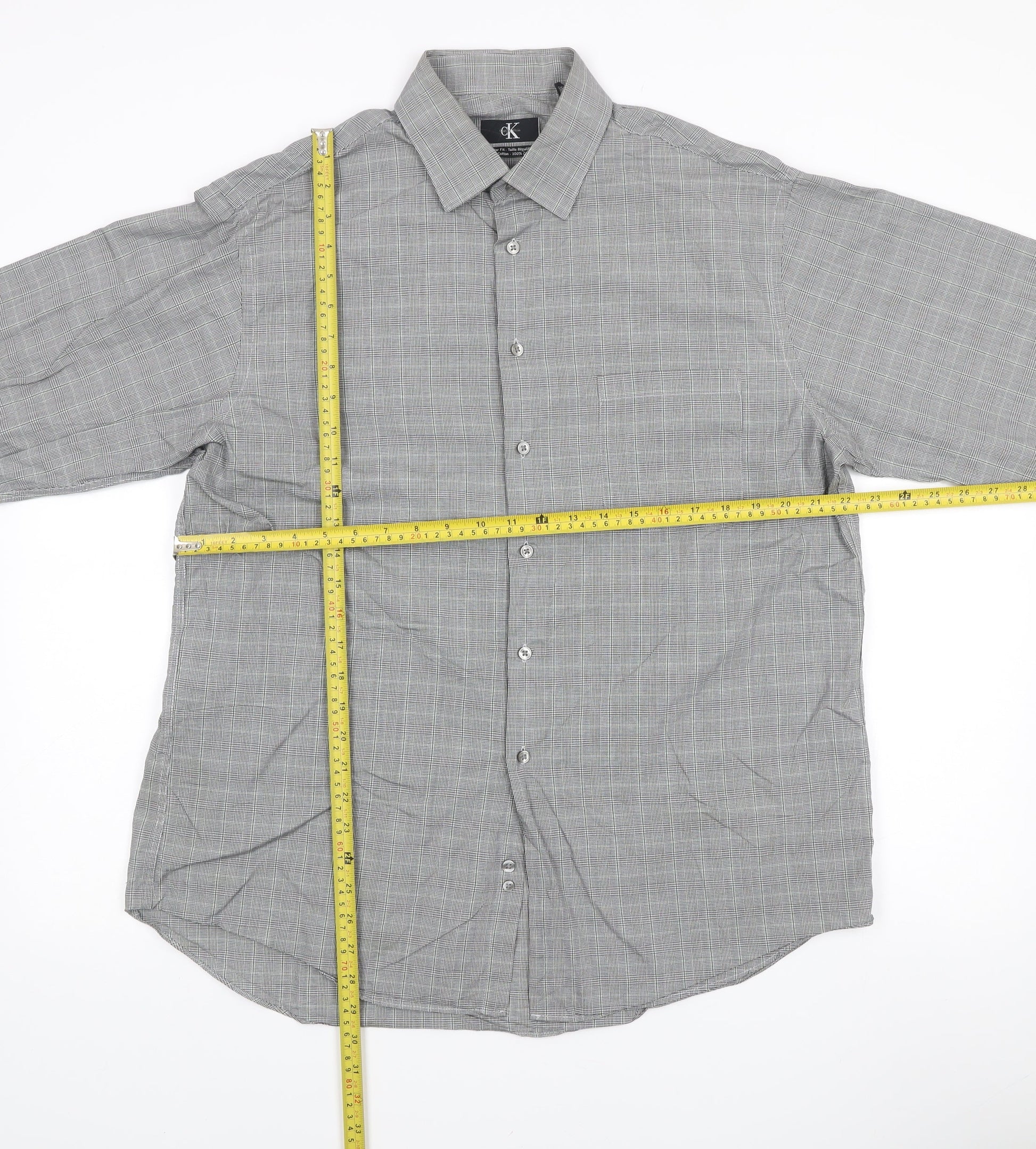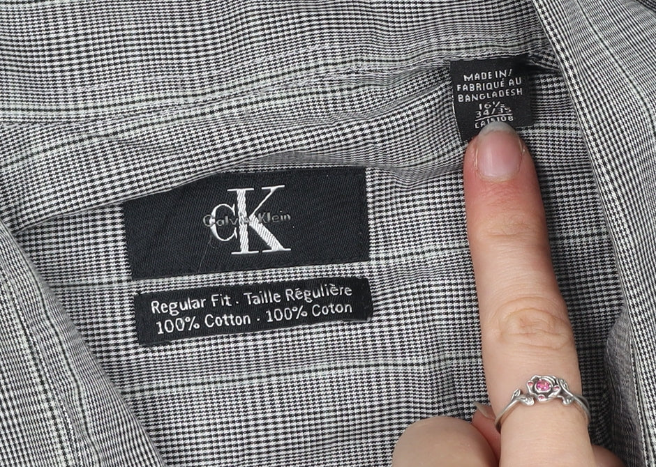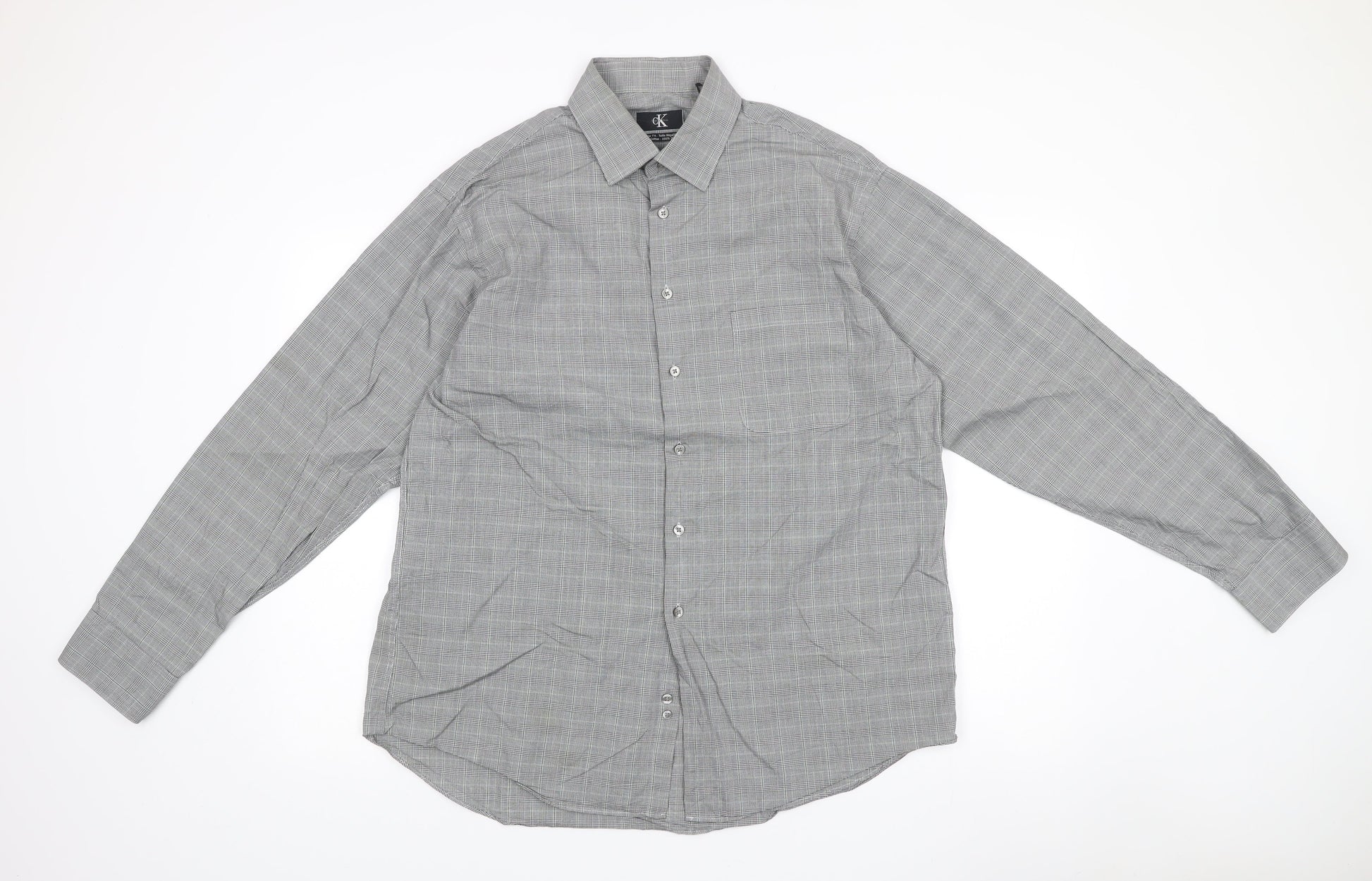 Calvin Klein Mens Grey Check Cotton Regular Fit Shirt Size 16