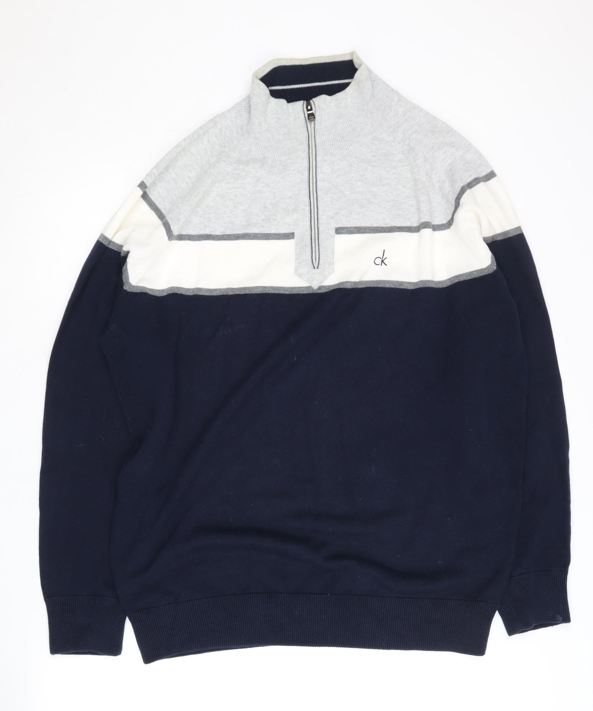 Calvin Klein Men's XL 1/4 Zip Sweatshirt Blue Grey