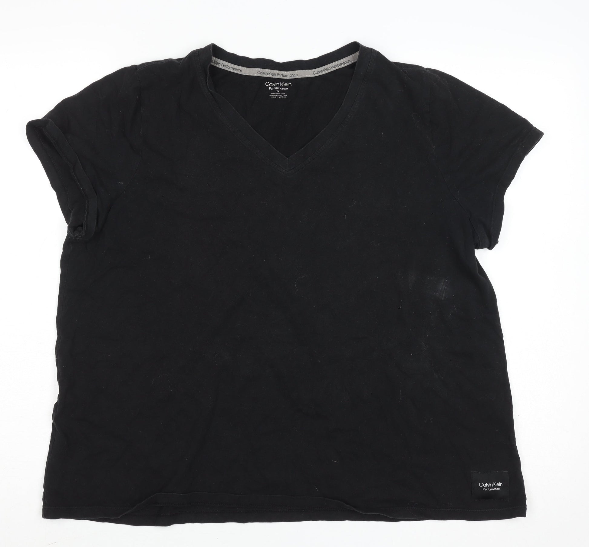 Calvin Klein Performance Womens Black V-Neck Cotton Active T-Shirt Size XL