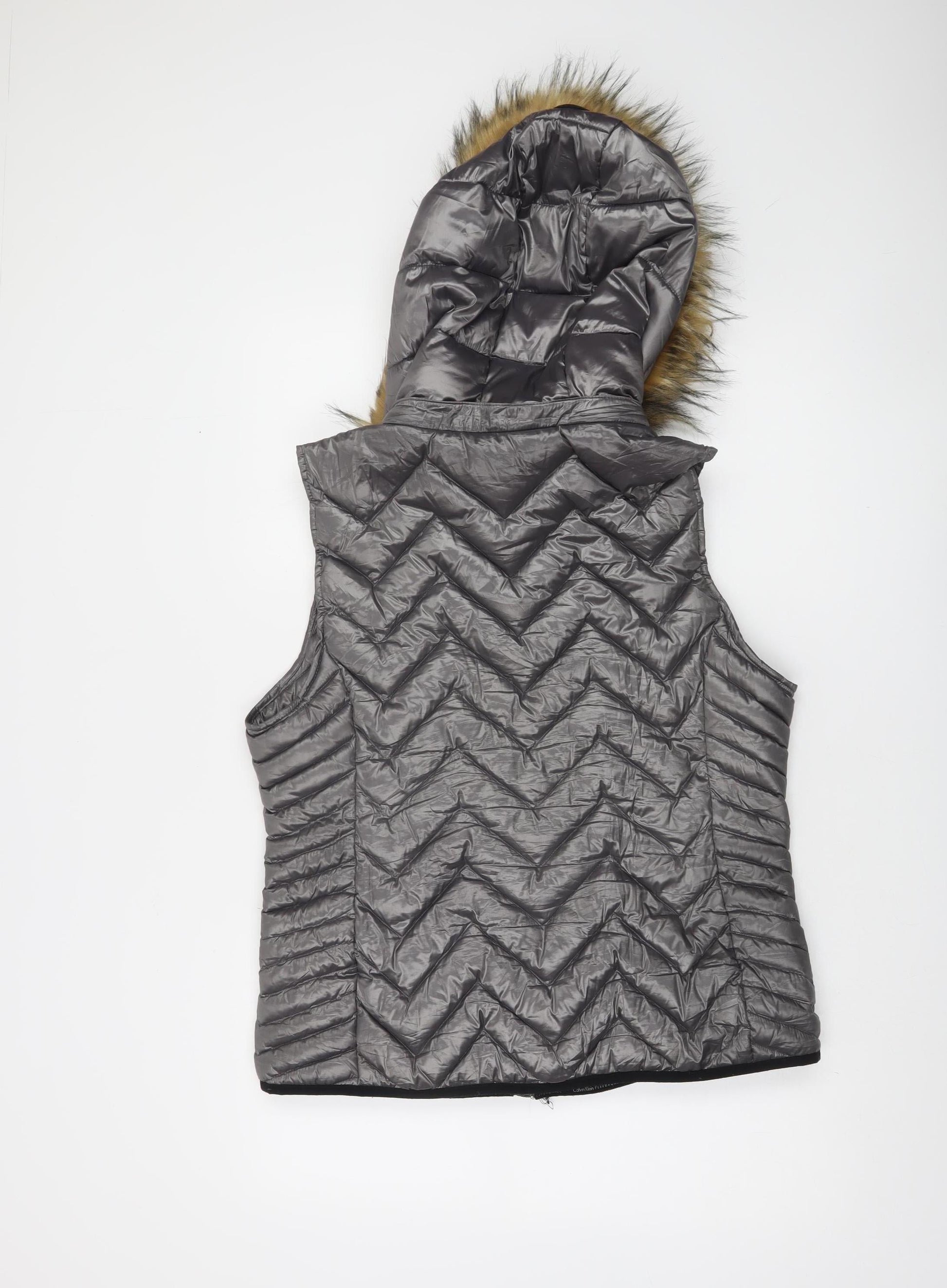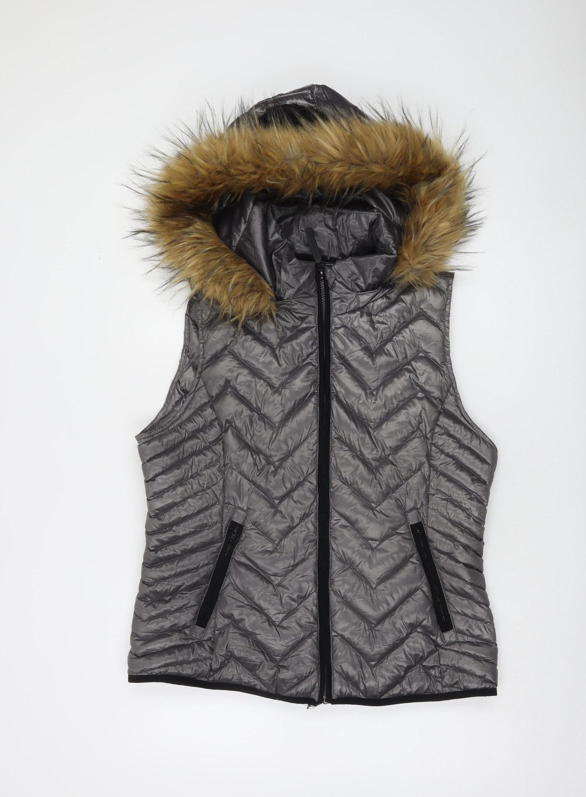 Calvin Klein Performance Women's Grey Fur Hooded Quilted Down Waistcoat Size L
