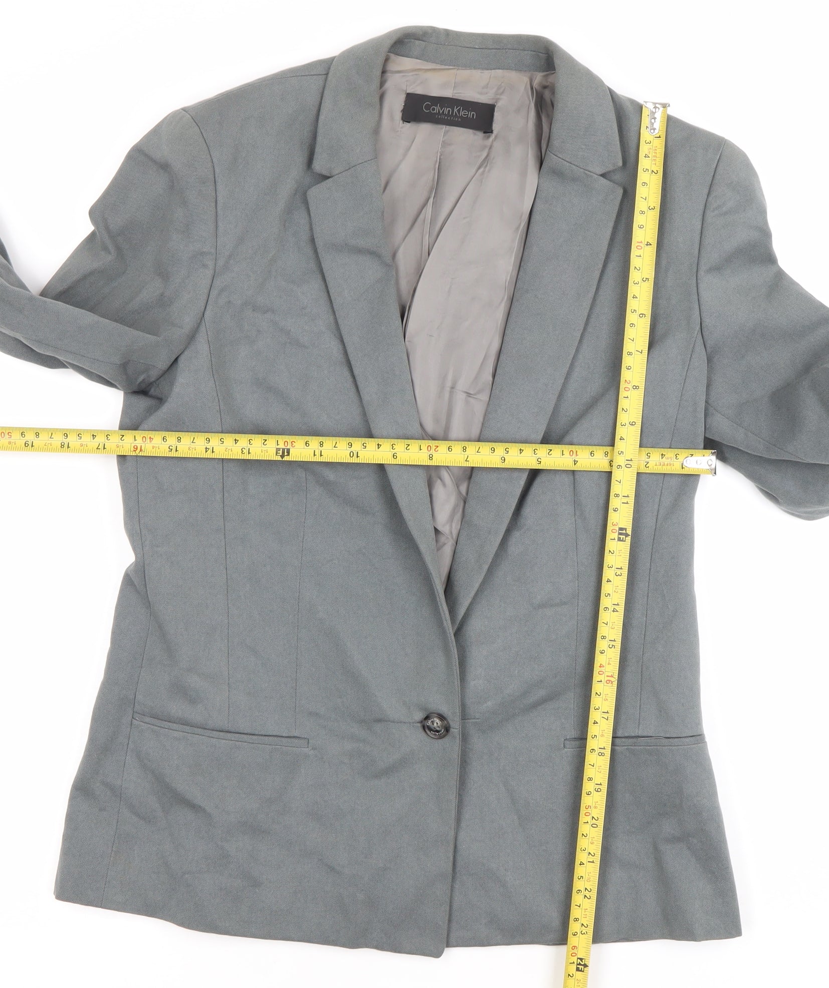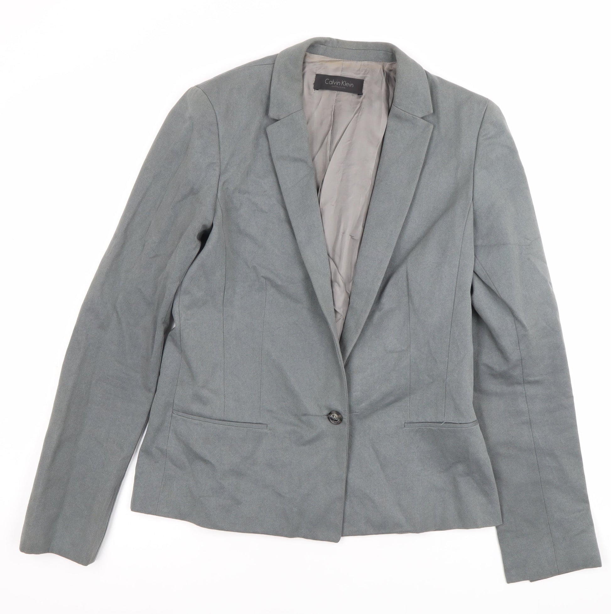Calvin Klein Women’s Grey Wool Blazer Size 10 Tailored Work Jacket
