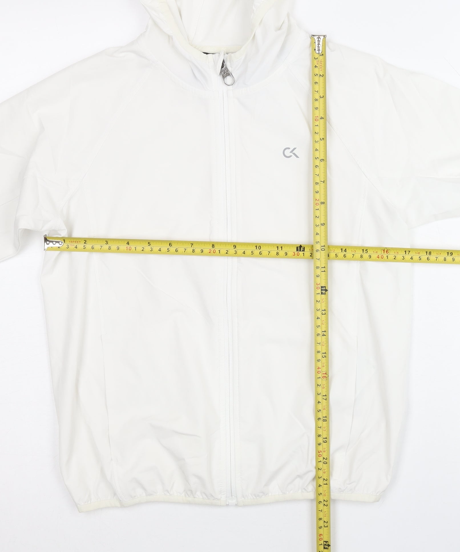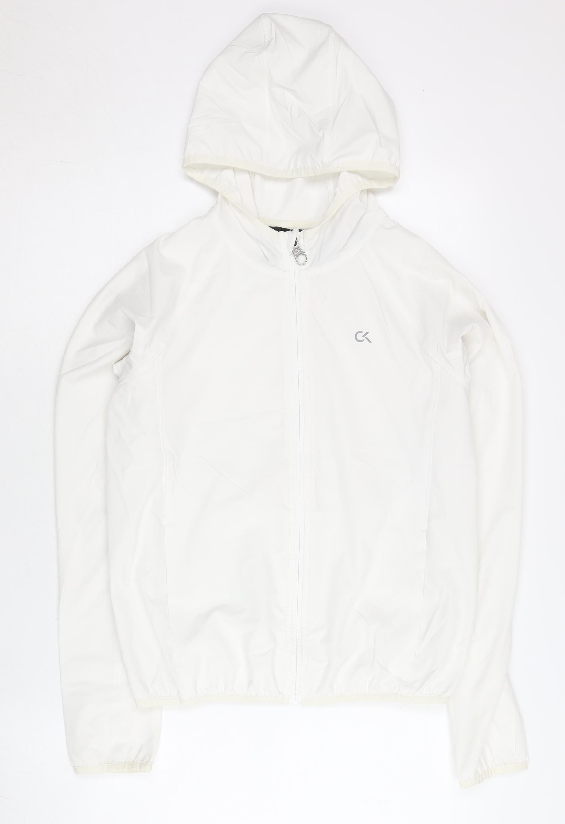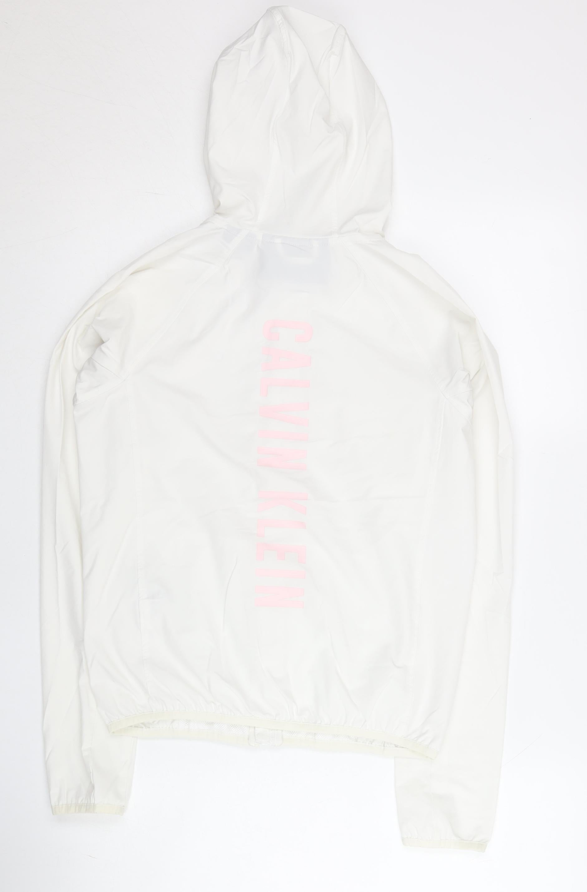 Calvin Klein Women White S Windbreaker Jacket Hooded Full Zip