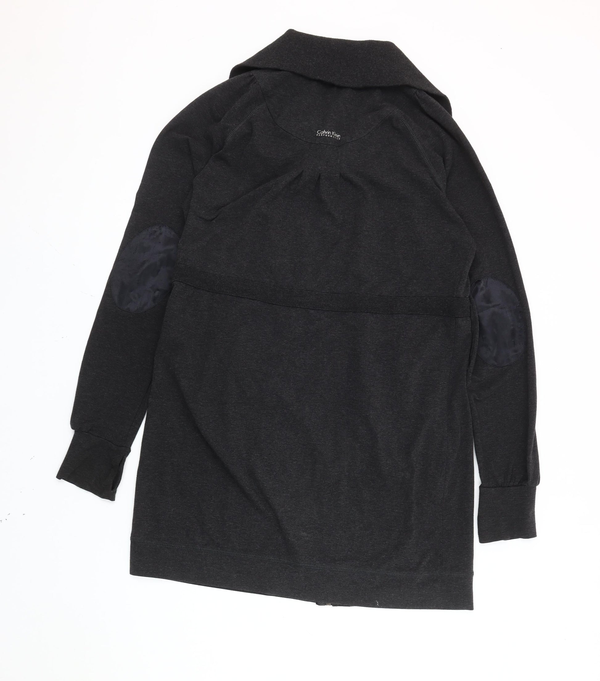 Calvin Klein Women's Black Mid-Length Jacket M Full Zip Collared