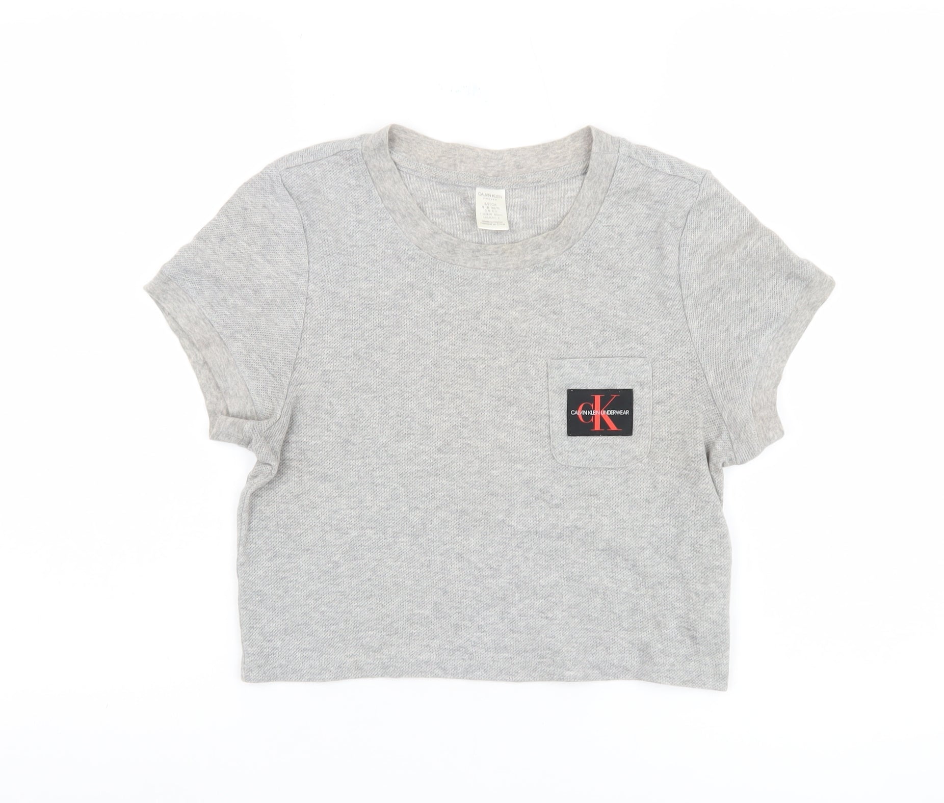 Calvin Klein Women's Grey Cropped T-Shirt, Size S
