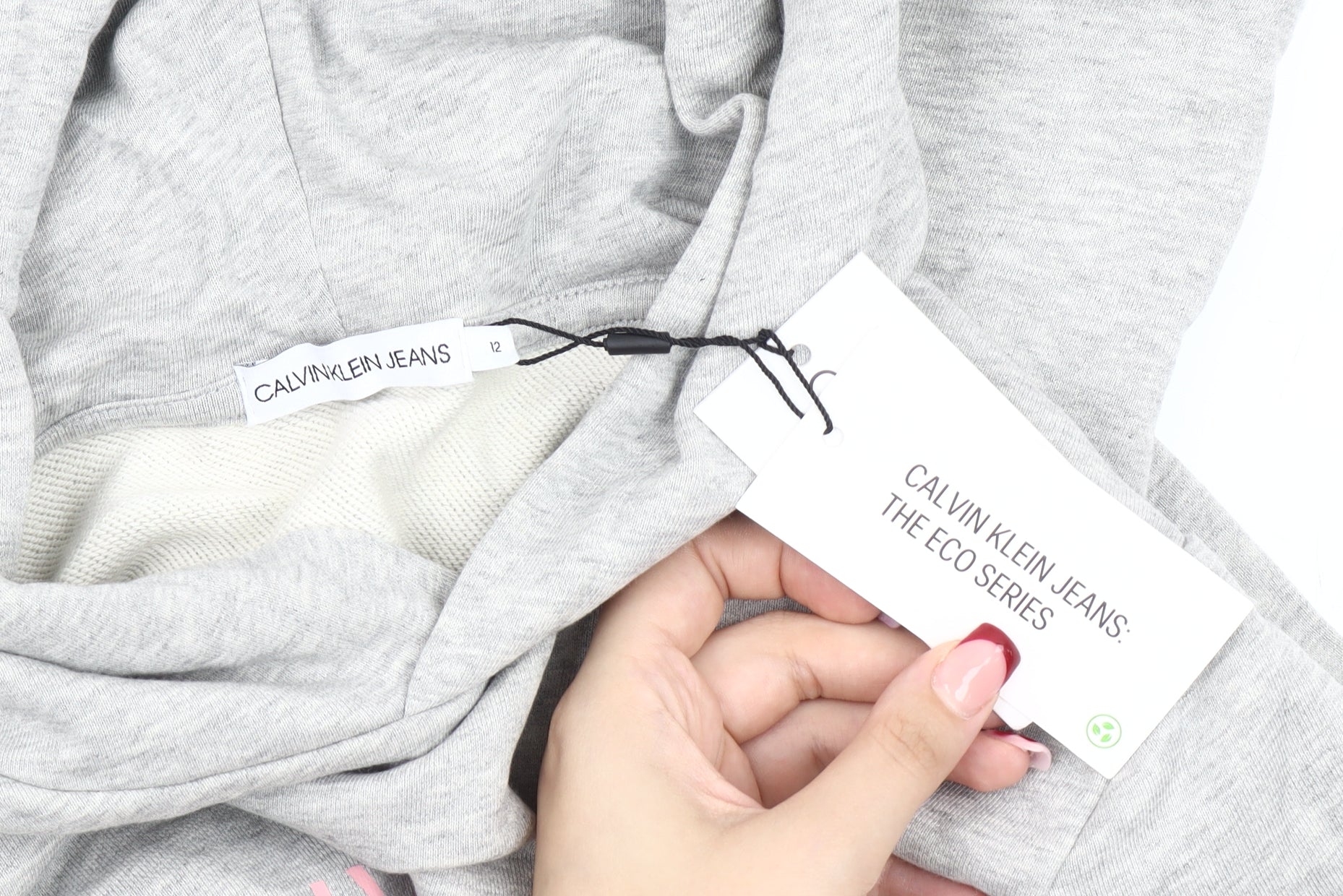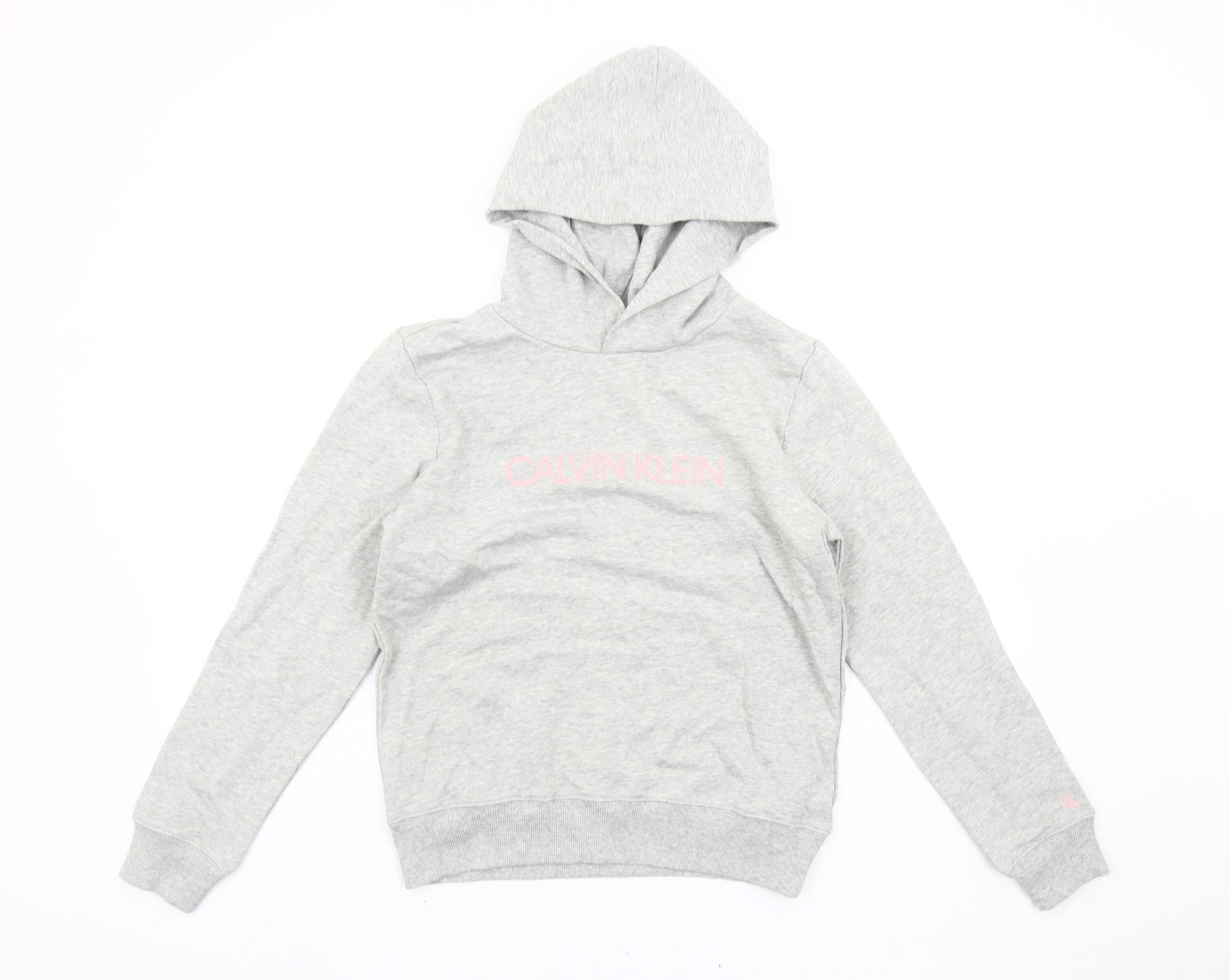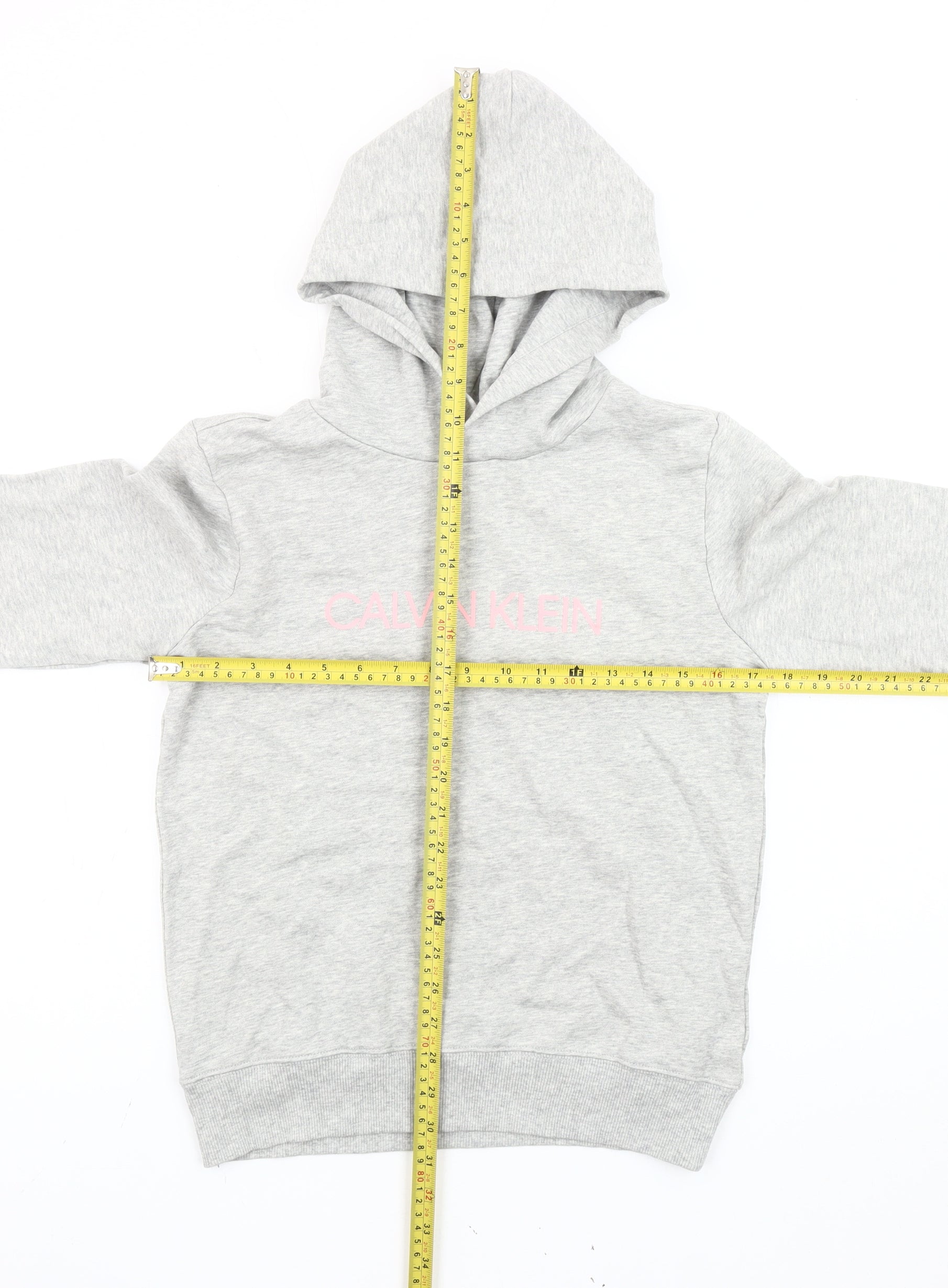 Calvin Klein Womens Grey Hoodie Size 12 Pullover Logo Hoodie Cotton