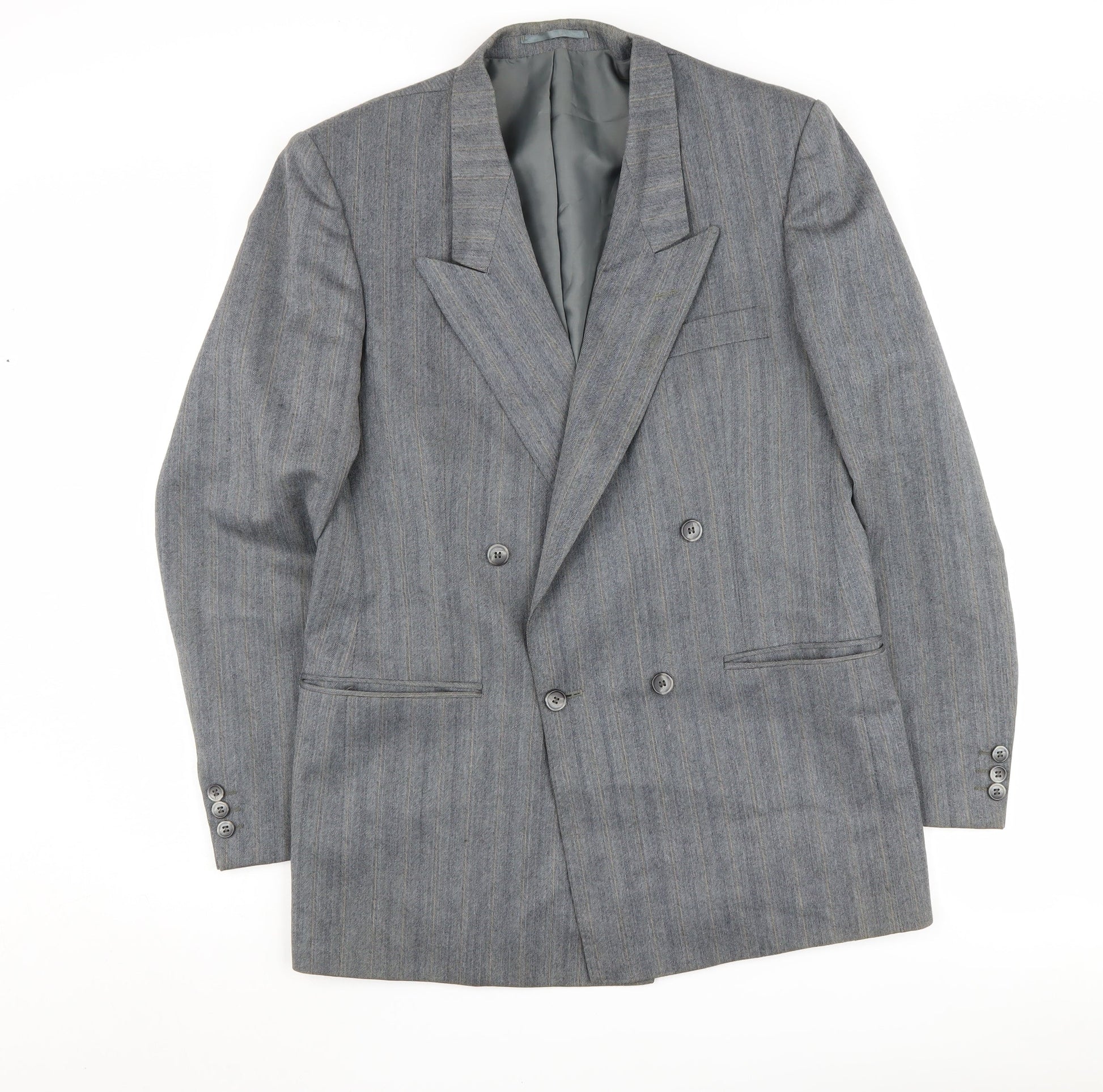 Canda Men's Grey Striped Double-Breasted Blazer 38R