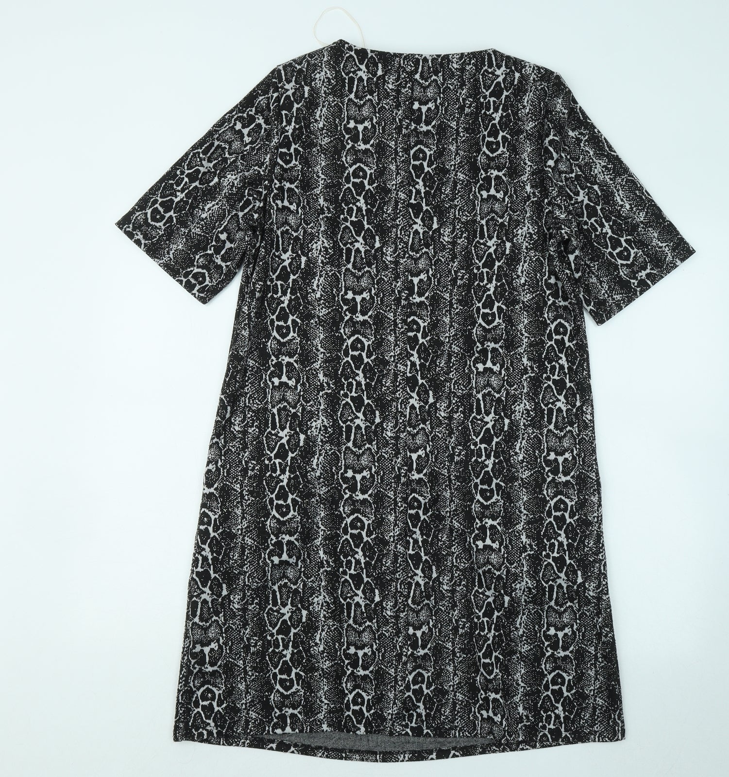 Capsule Womens Black Geometric Polyester T-Shirt Dress Size 14 Round Neck