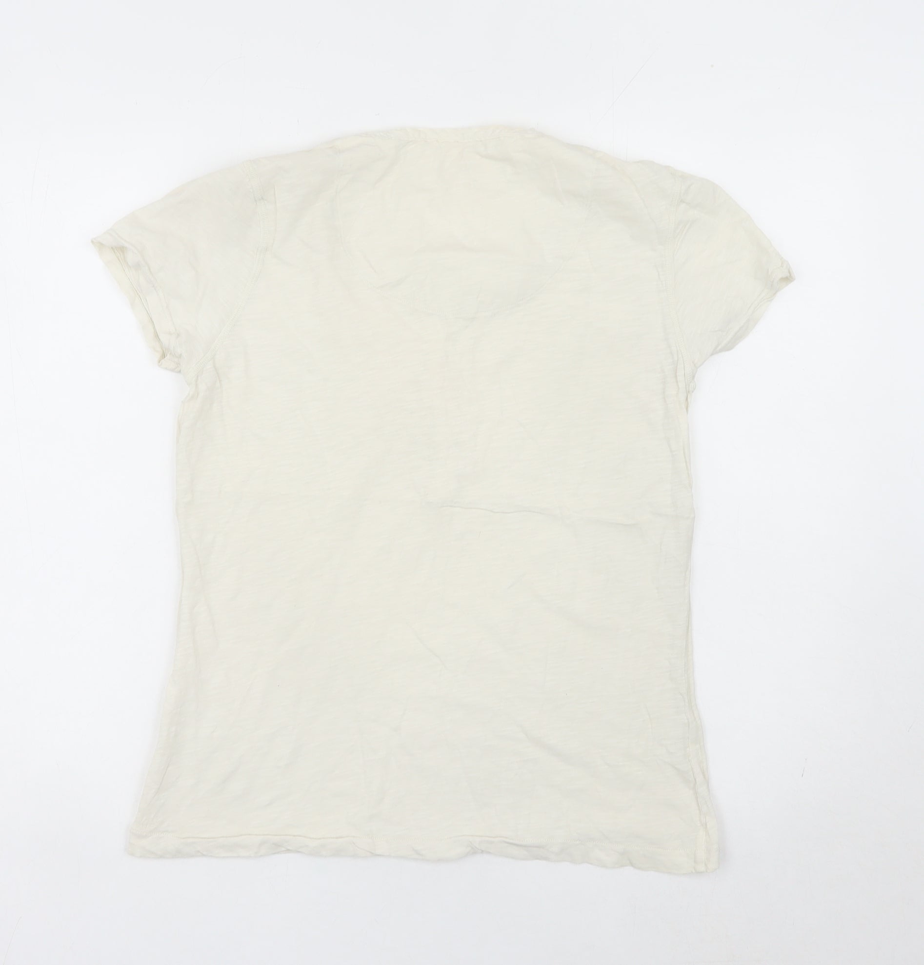 Cath Kidston Women Ivory Cotton Scoop Neck Button T-Shirt L