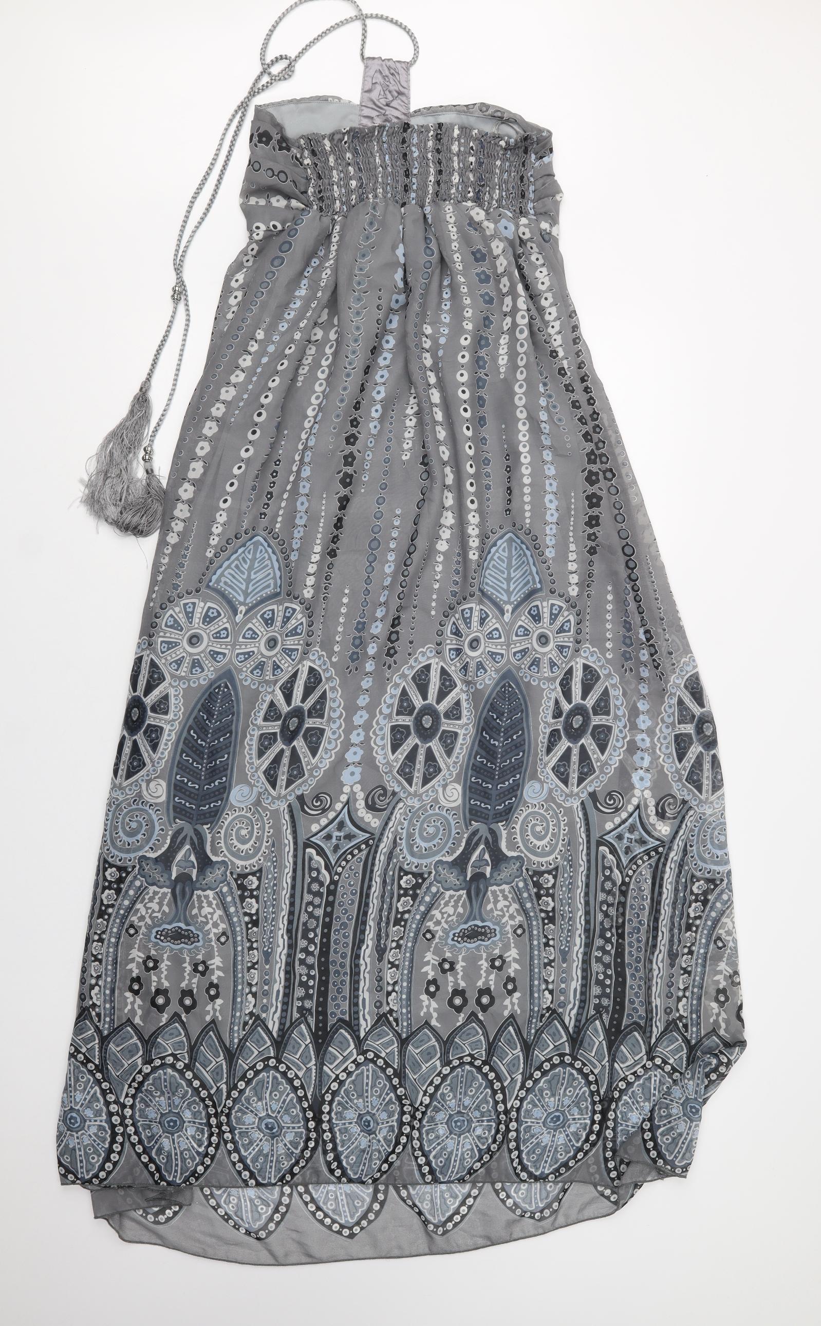 CDG Fashion Womens Grey Geometric Polyester Maxi Size S Off the Shoulder