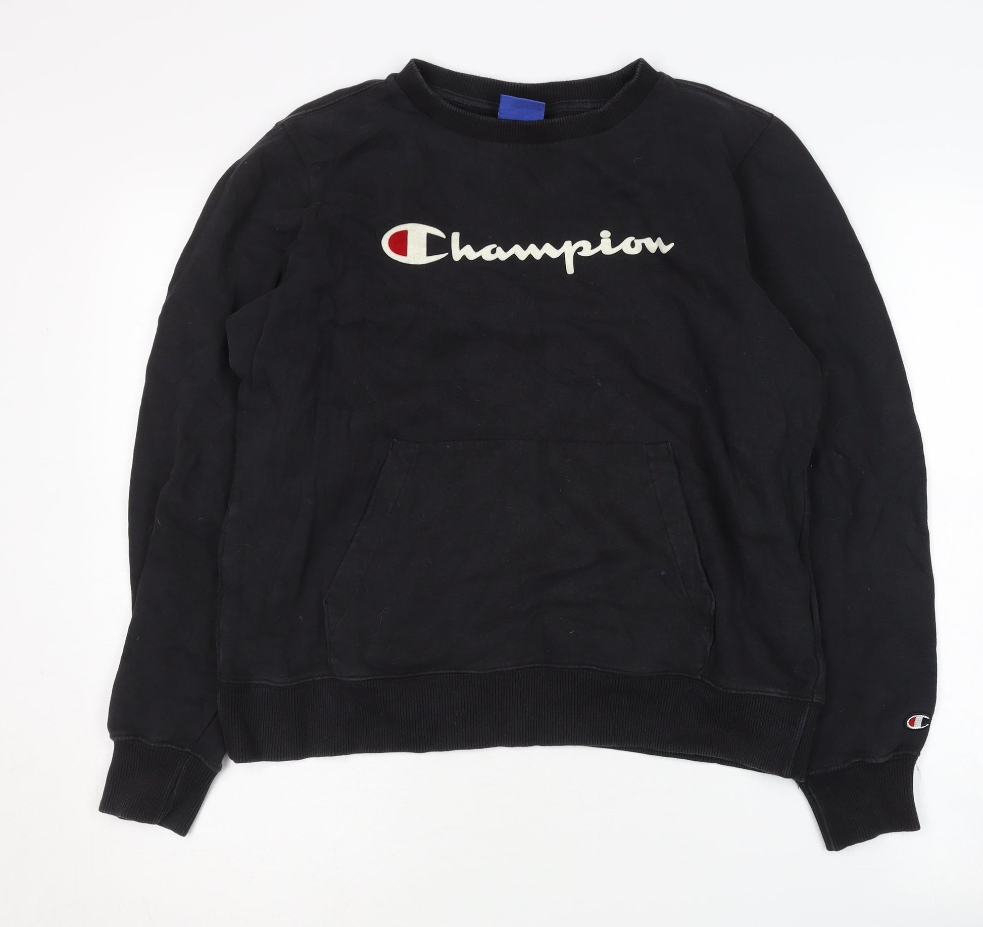 Champion Black Logo Pullover Sweatshirt S Unisex