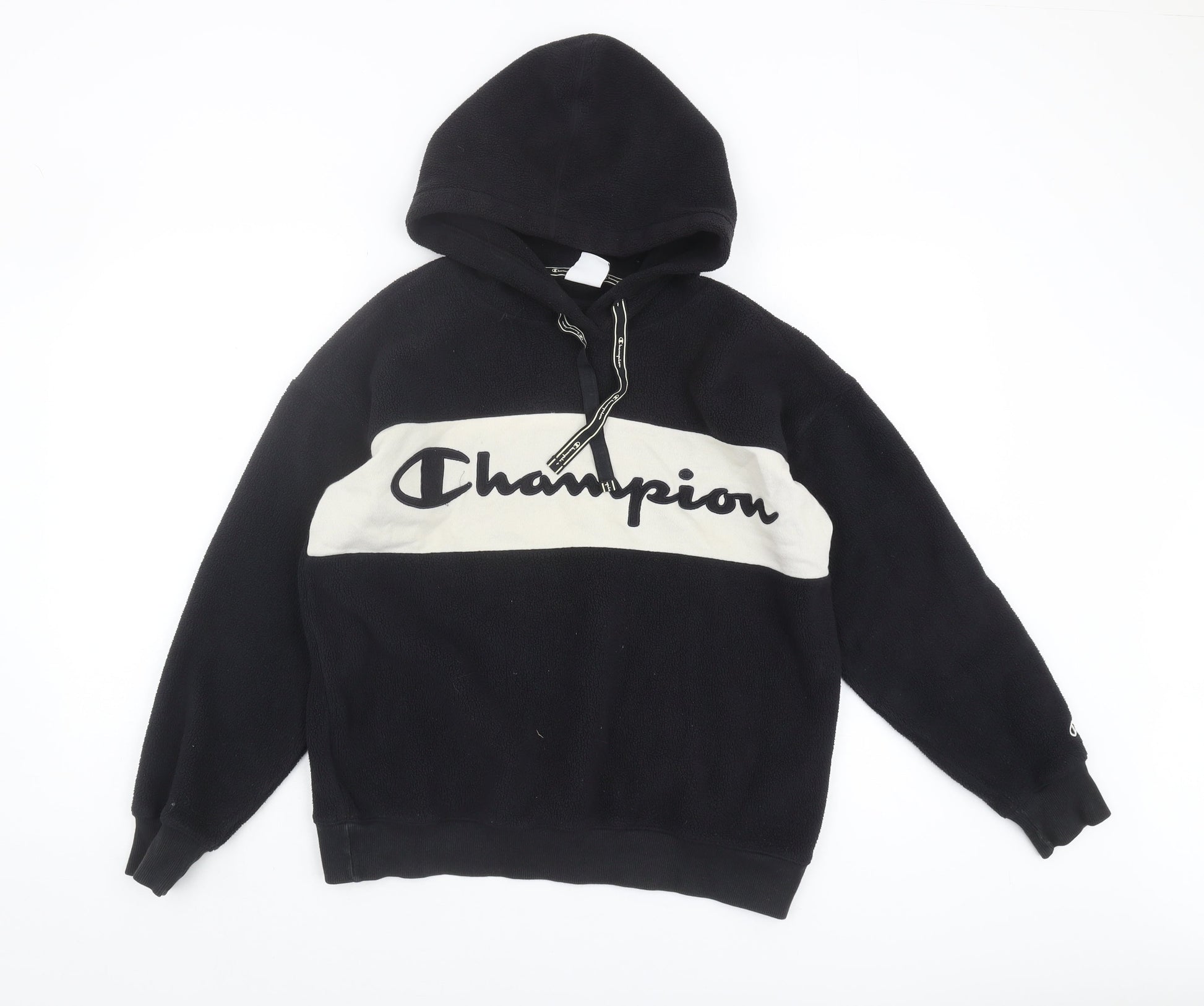 Champion Black Unisex Hoodie S - Logo Sports Fleece Casual