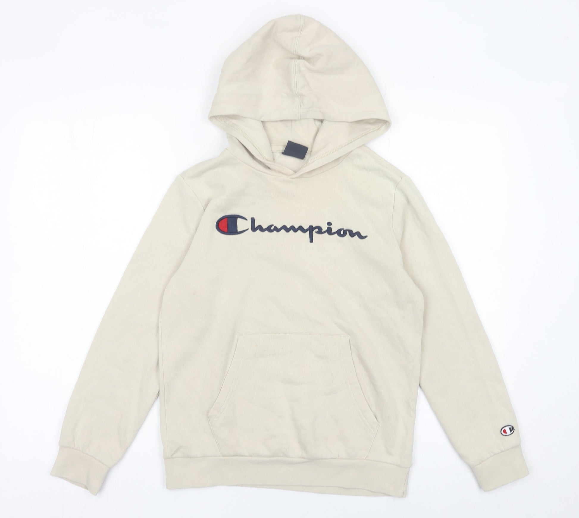 Champion Boys Beige Hoodie Pullover 11-12 Years Logo Cotton Blend