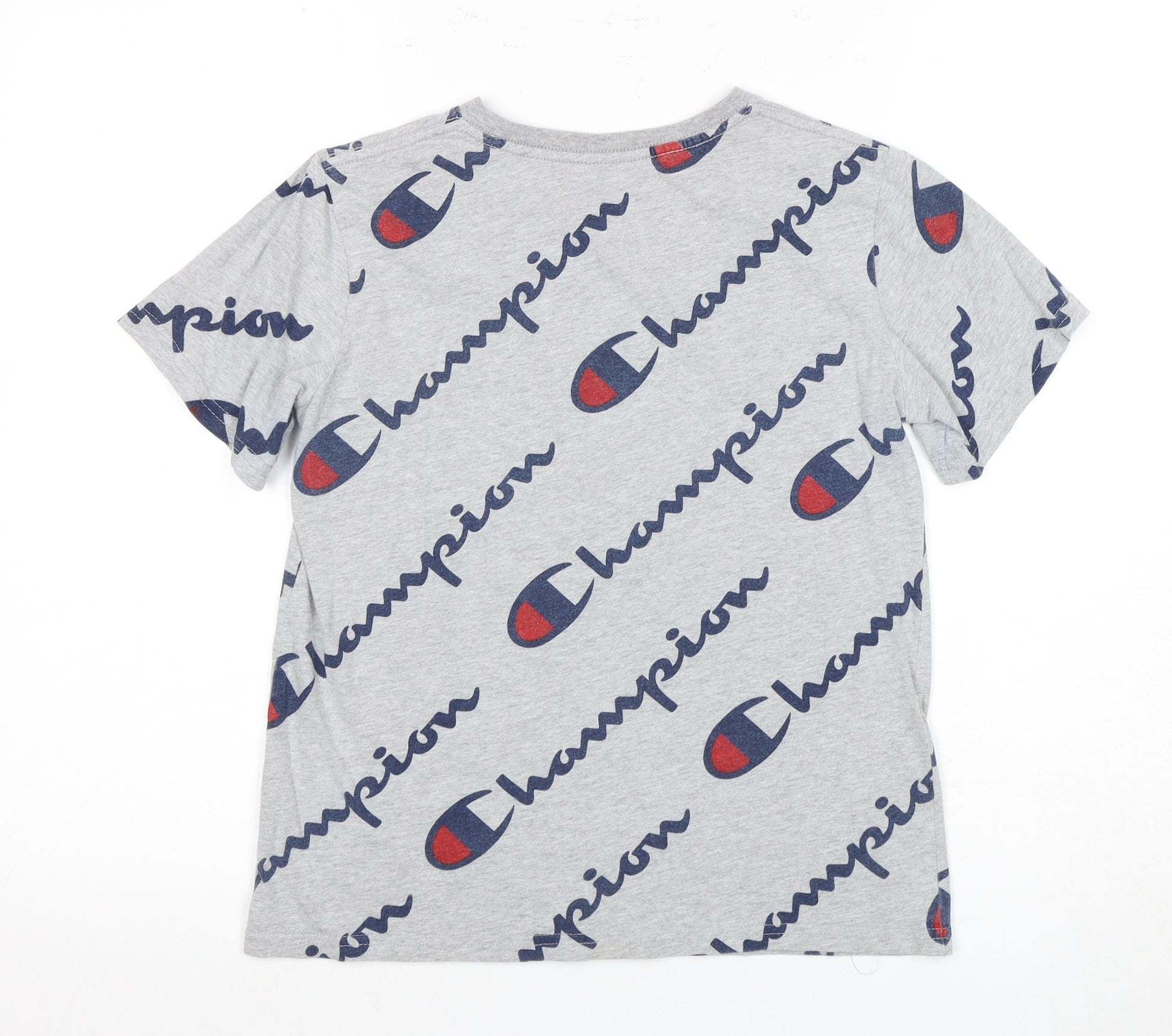 Champion Boys Grey Logo T-Shirt, Short Sleeve, Size 1