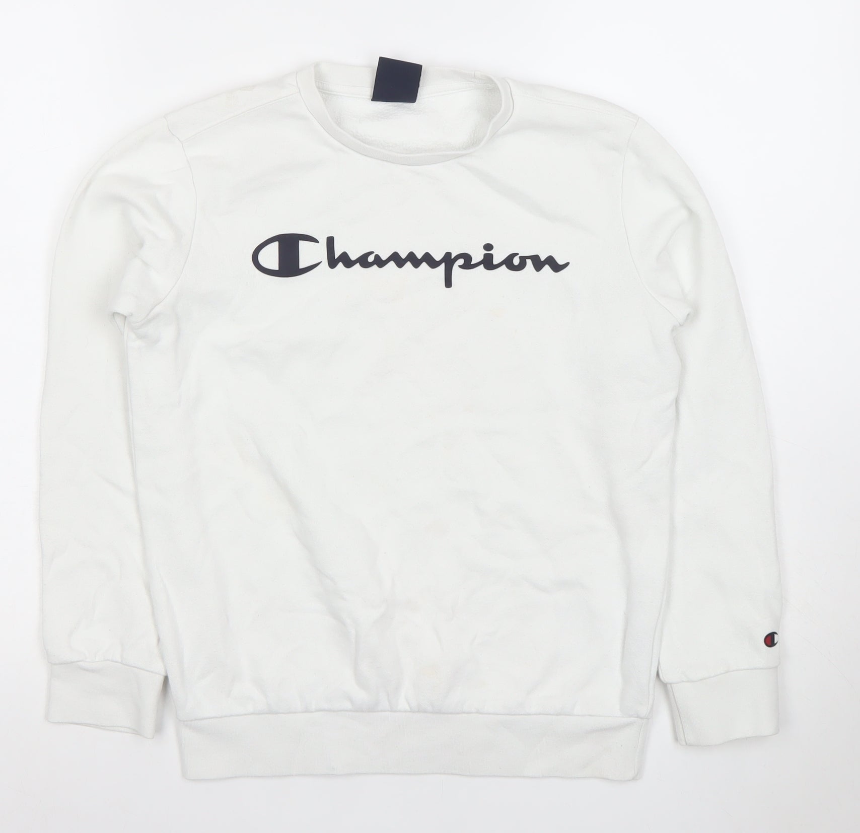 Champion Boys White Pullover Sweatshirt L Regular Fit Crew Neck Logo Fleece