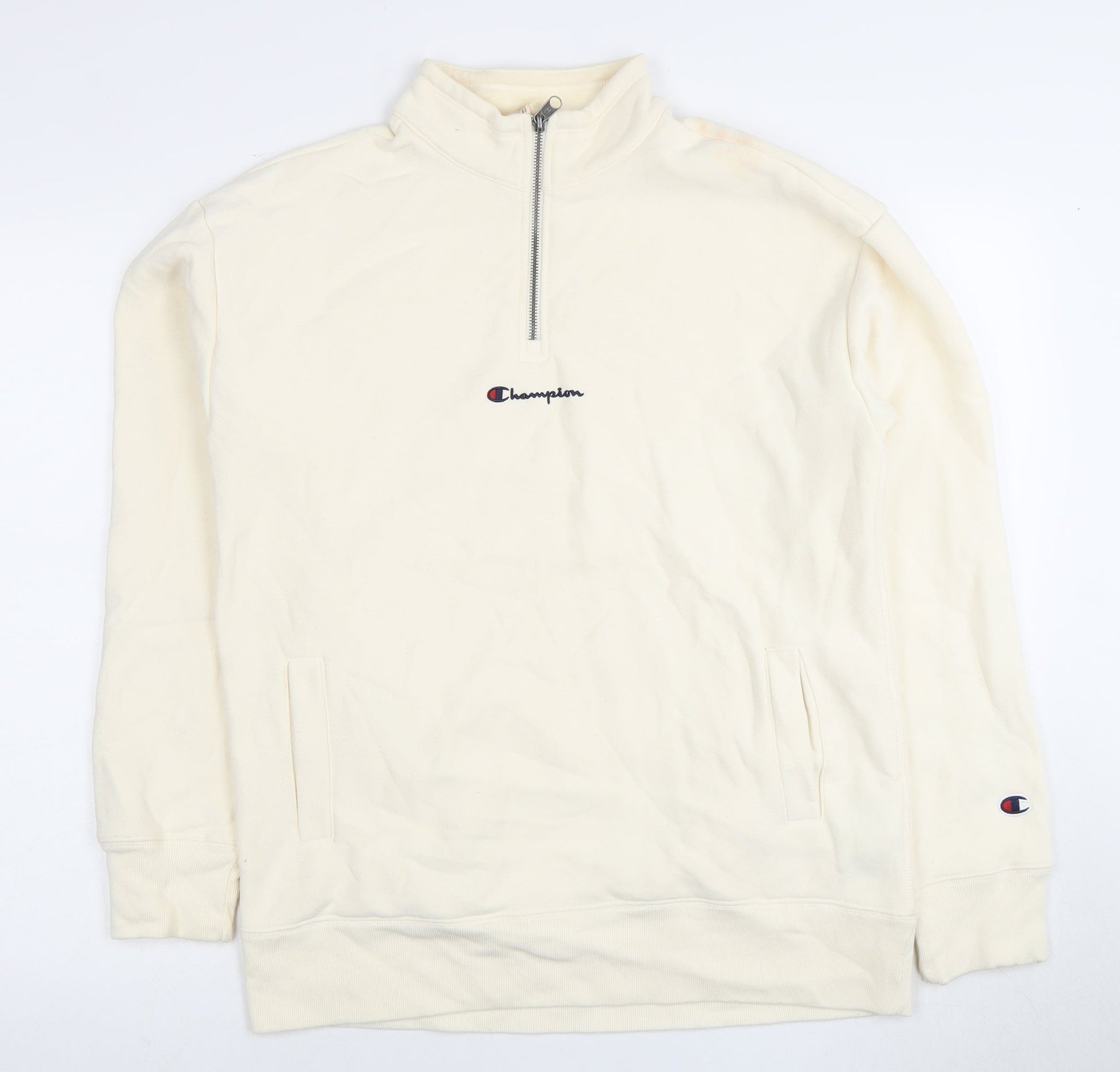 Champion Ivory 1/4 Zip Sweatshirt M Unisex Logo