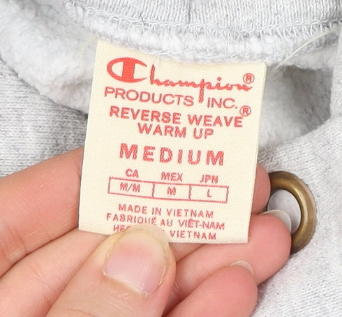 Champion Men Grey Pullover Hoodie Medium Logo Sportswear