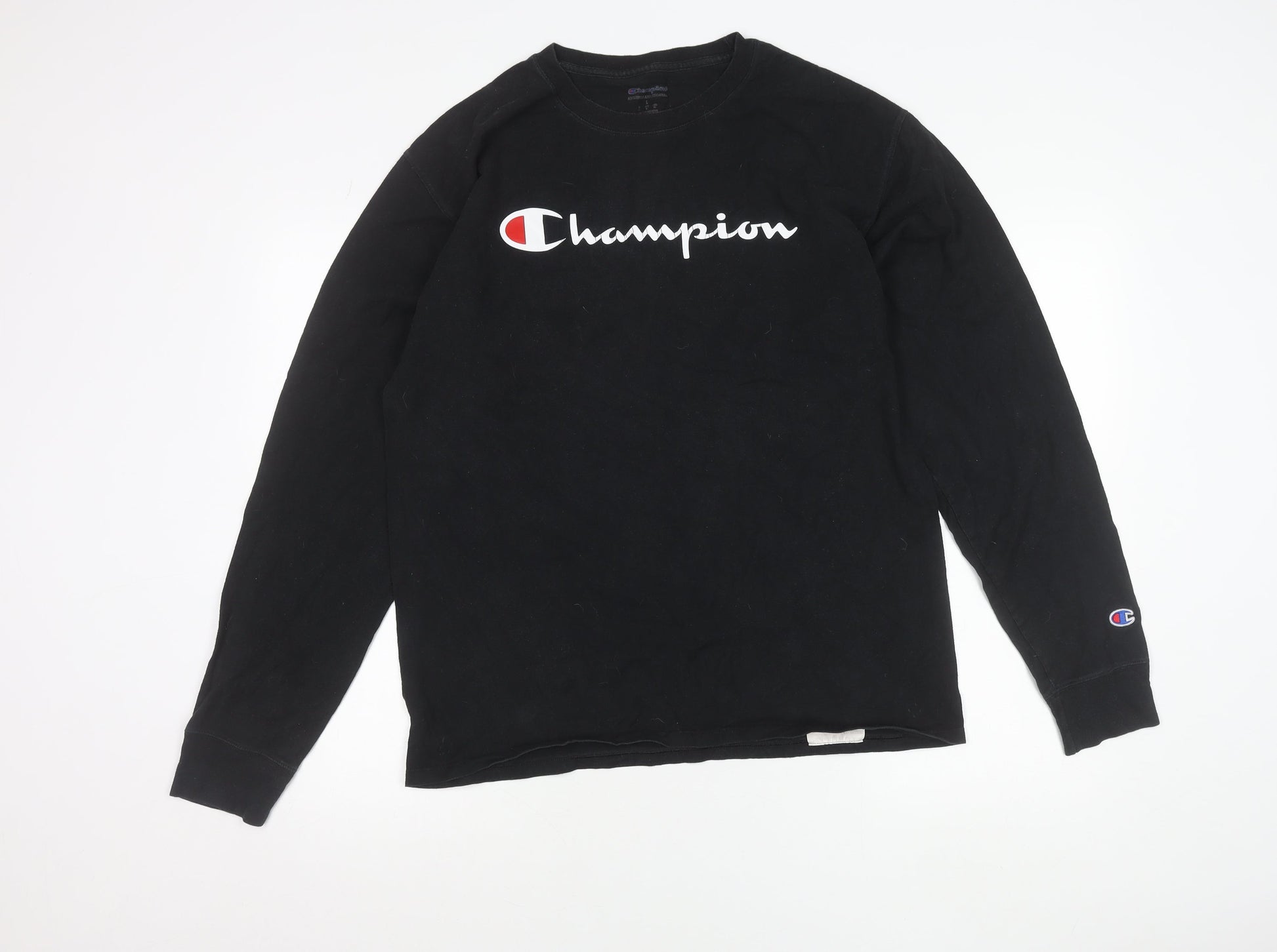 Champion Men’s Black Long Sleeve Cotton Logo T-Shirt Size L