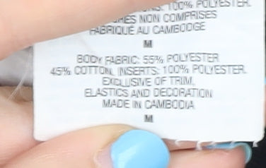 - Material Breakdown: 55% Polyester 45% Cotton