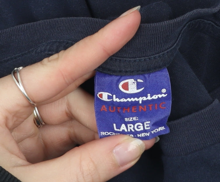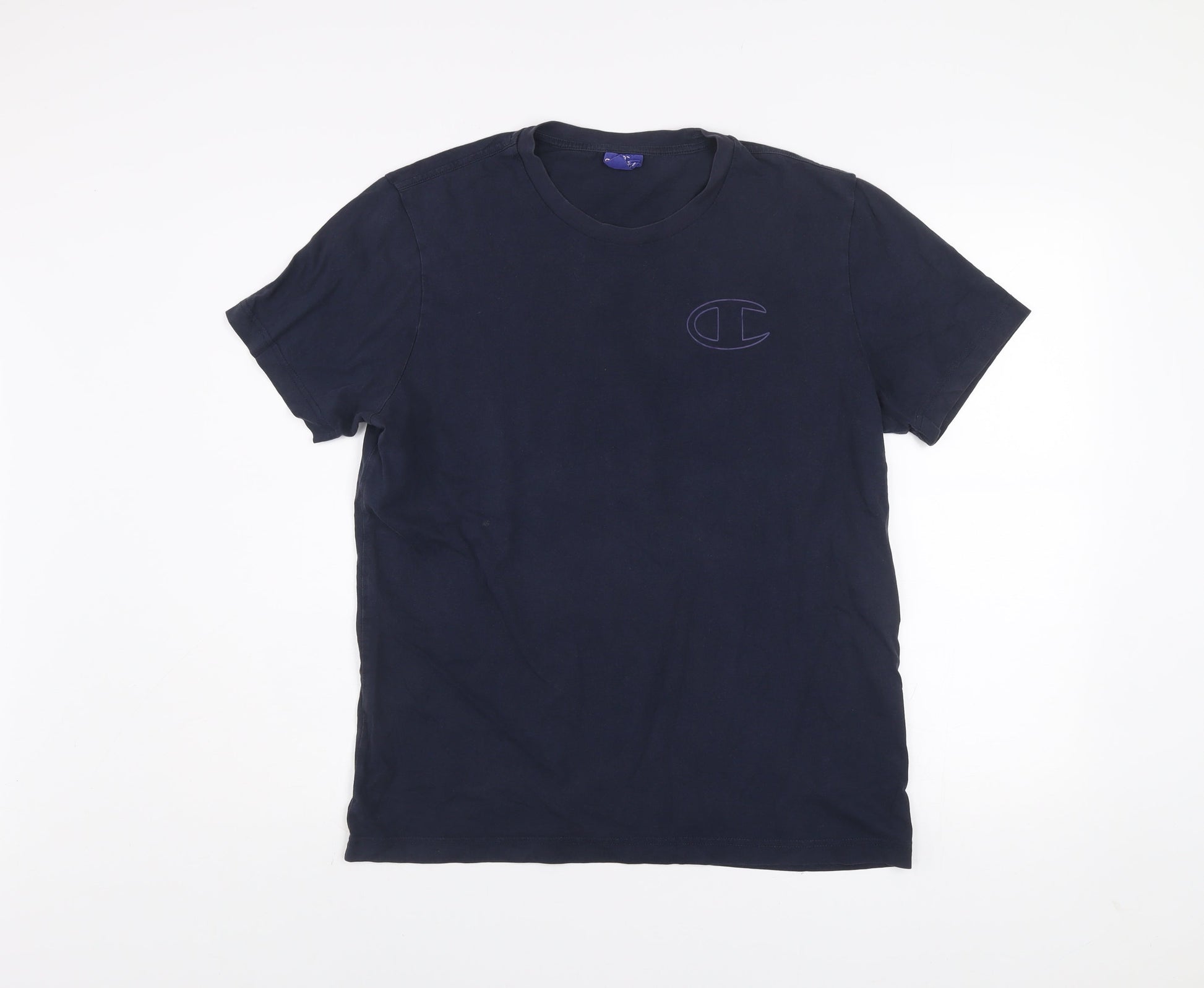 Champion Men’s Blue Cotton Crew Neck Short Sleeve T-Shirt - Large