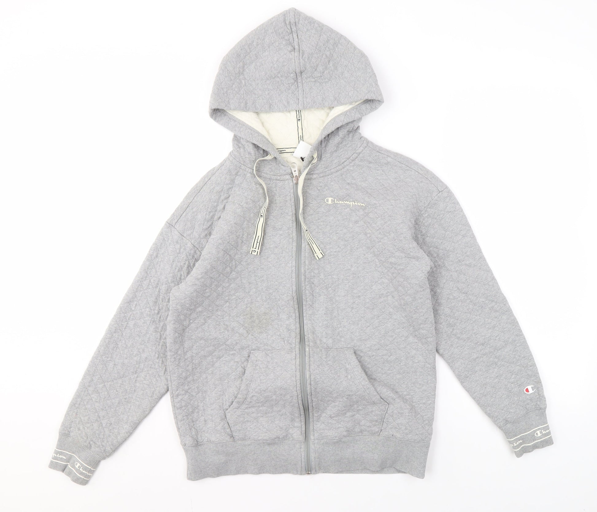 Champion Men’s Grey Full Zip Hoodie - Small, Quilted Style