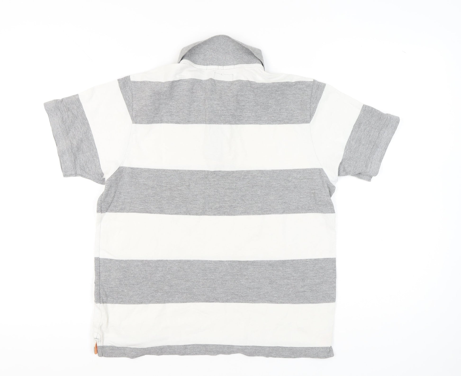 Champion Men’s Grey White Striped Polo Shirt Medium Short Sleeve