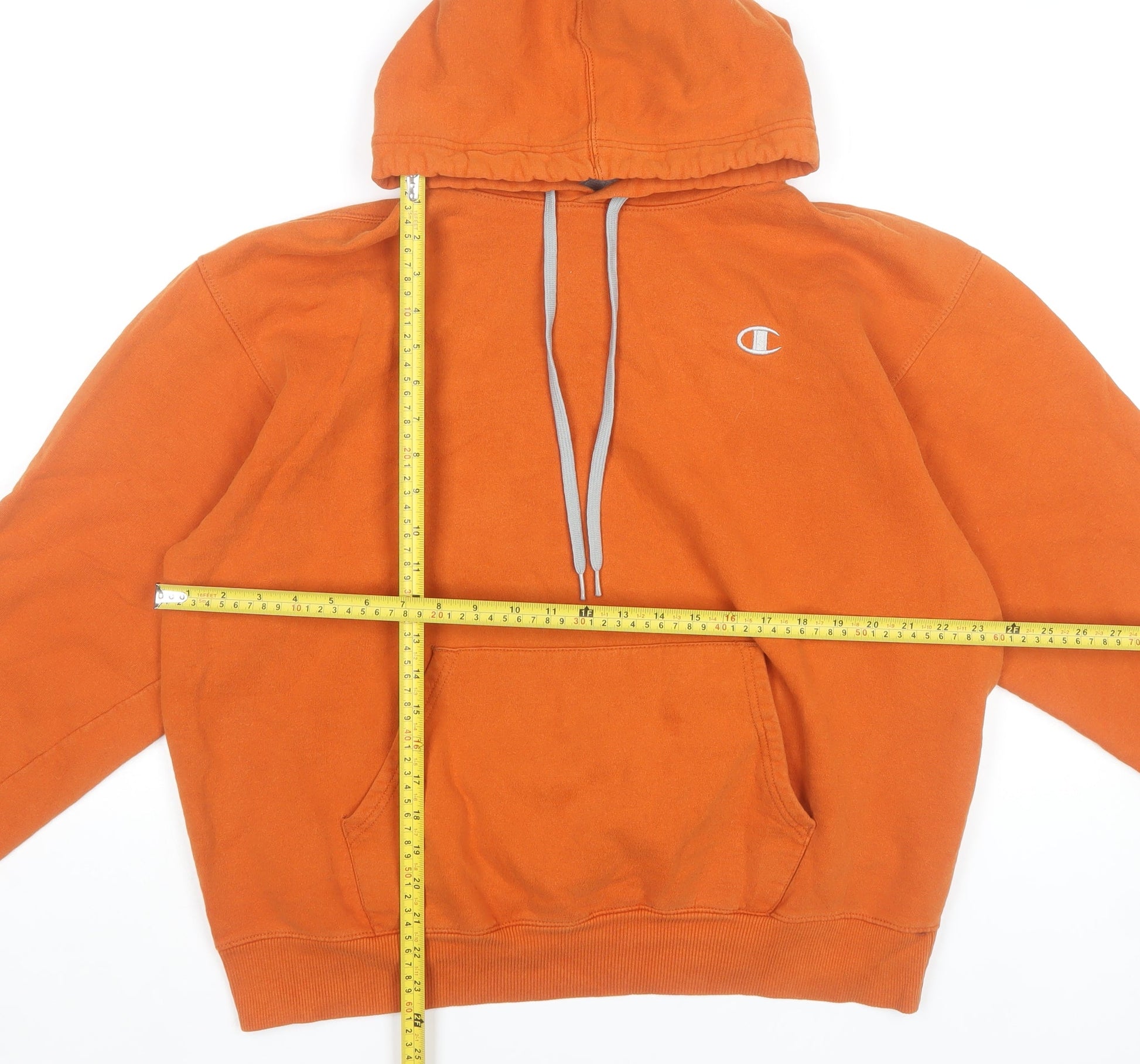 Champion Men’s Orange Pullover Hoodie Size L Logo Fleece Sweatshirt