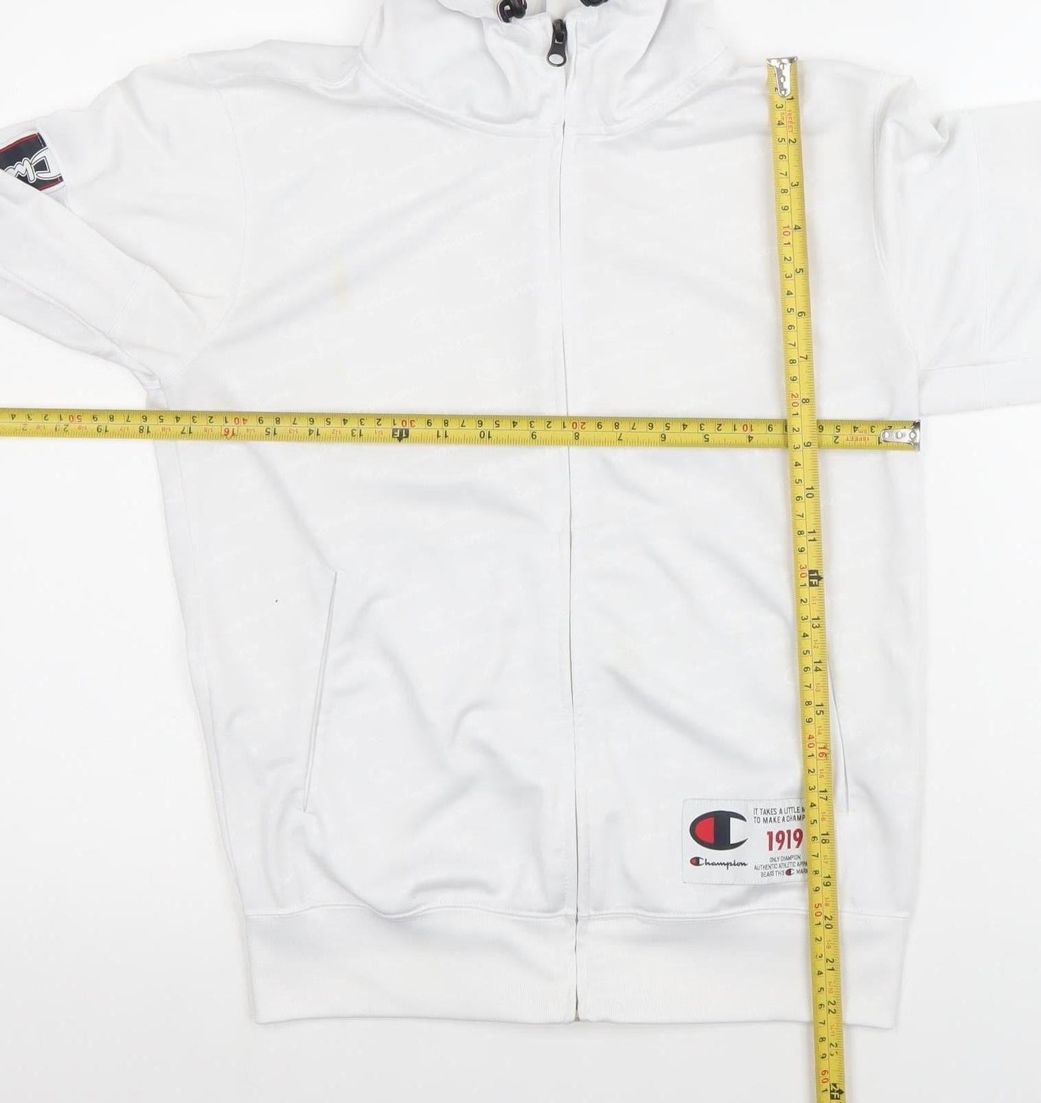Champion Men White Full Zip Hoodie S Logo Sports Polyester