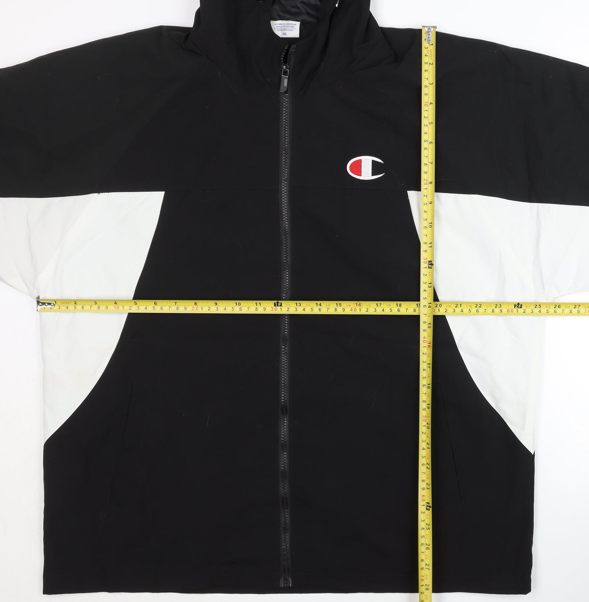 Champion Mens Black 2XL Windbreaker Jacket Hooded Polyester Sports