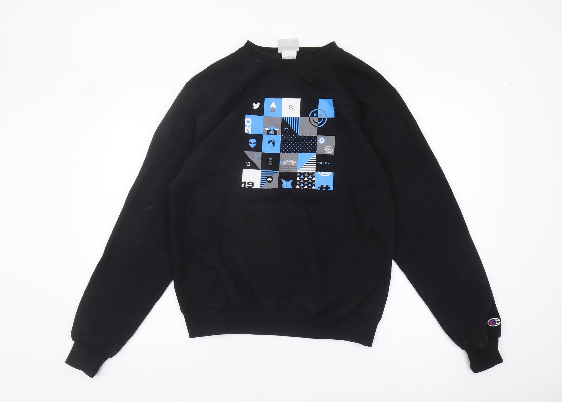 Champion Men's Black Graphic Print Pullover Sweatshirt, Size S
