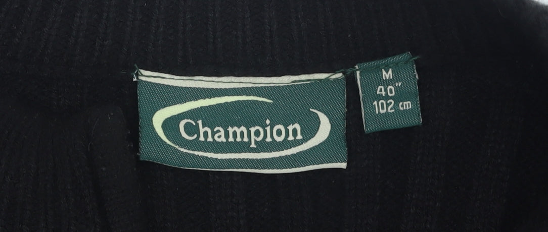 Champion Men's Black Wool Knit Jacket, Size M, Full Zip