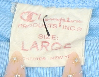 Champion Men's Blue Cotton T-Shirt, L, Embroidered, Casual