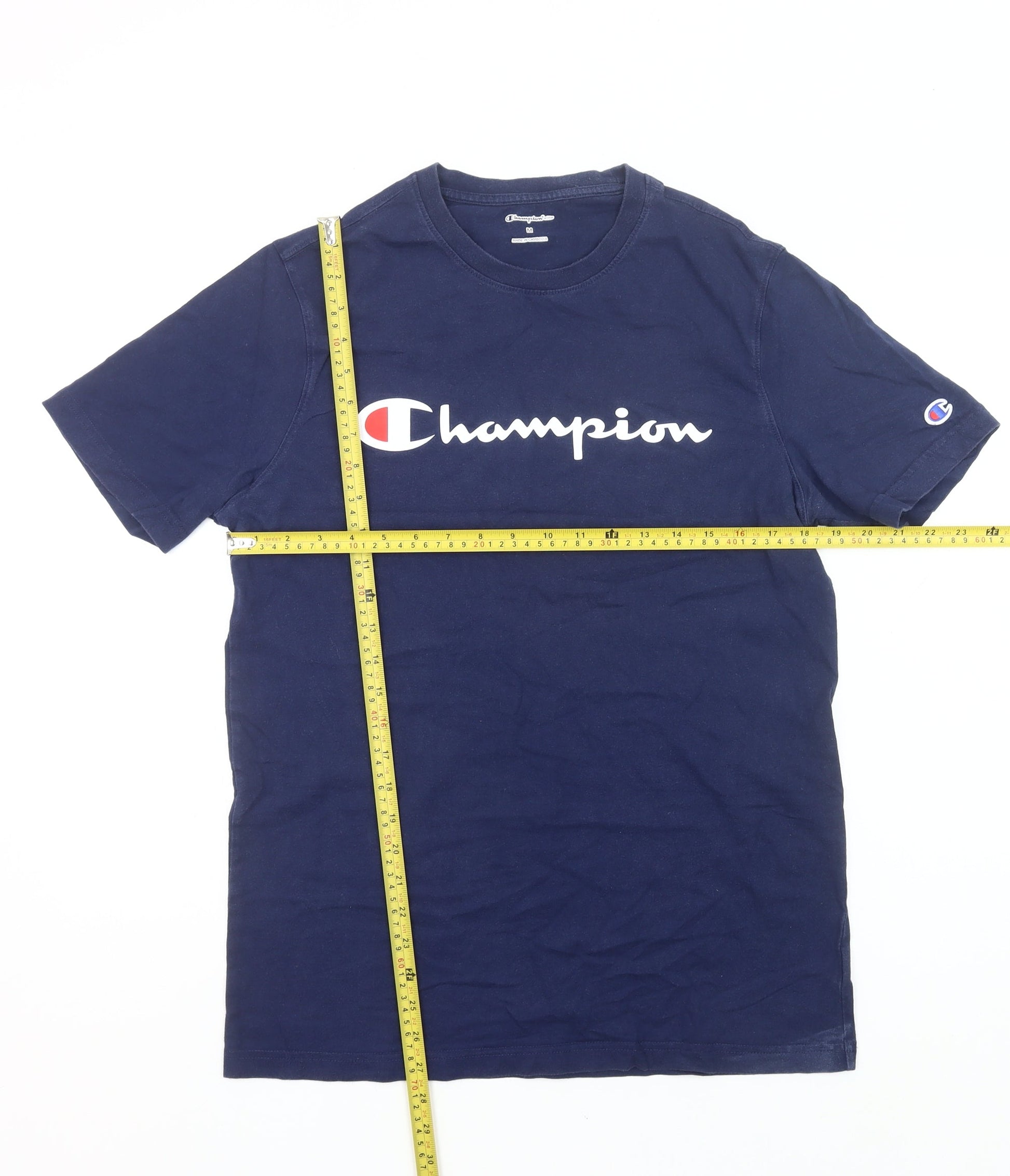 Champion Men's Blue Medium Logo Graphic Crew Neck T-Shirt