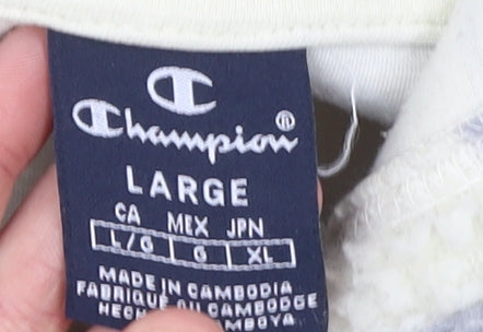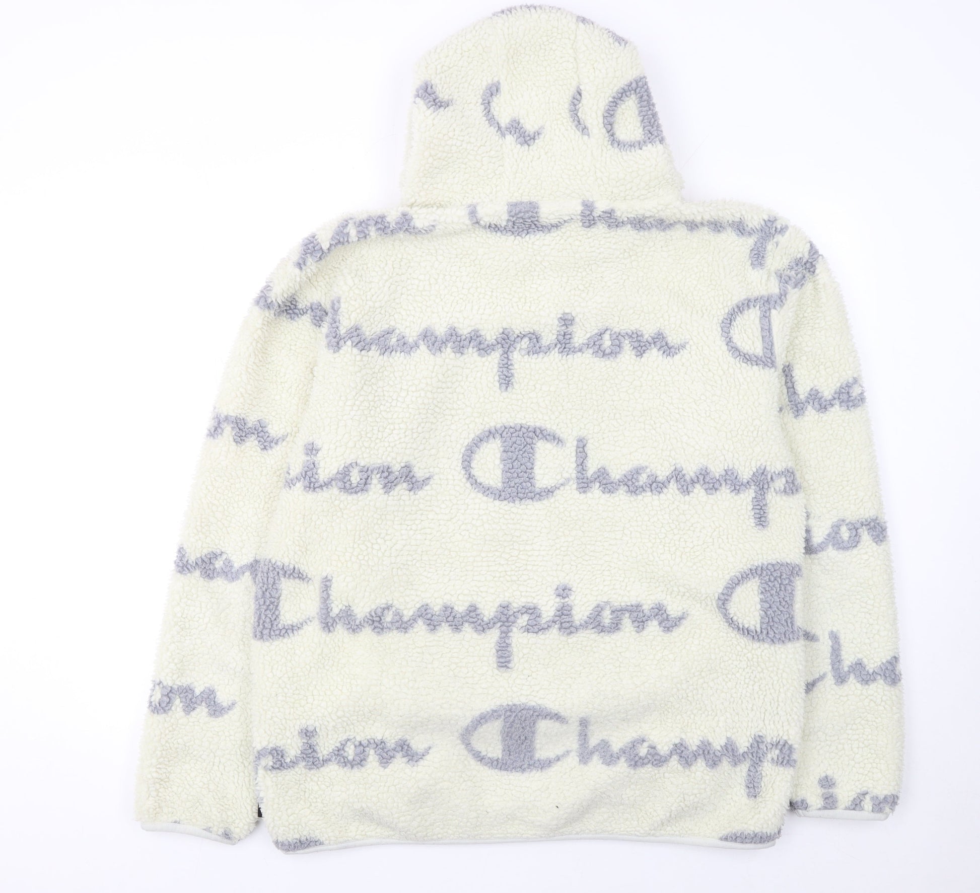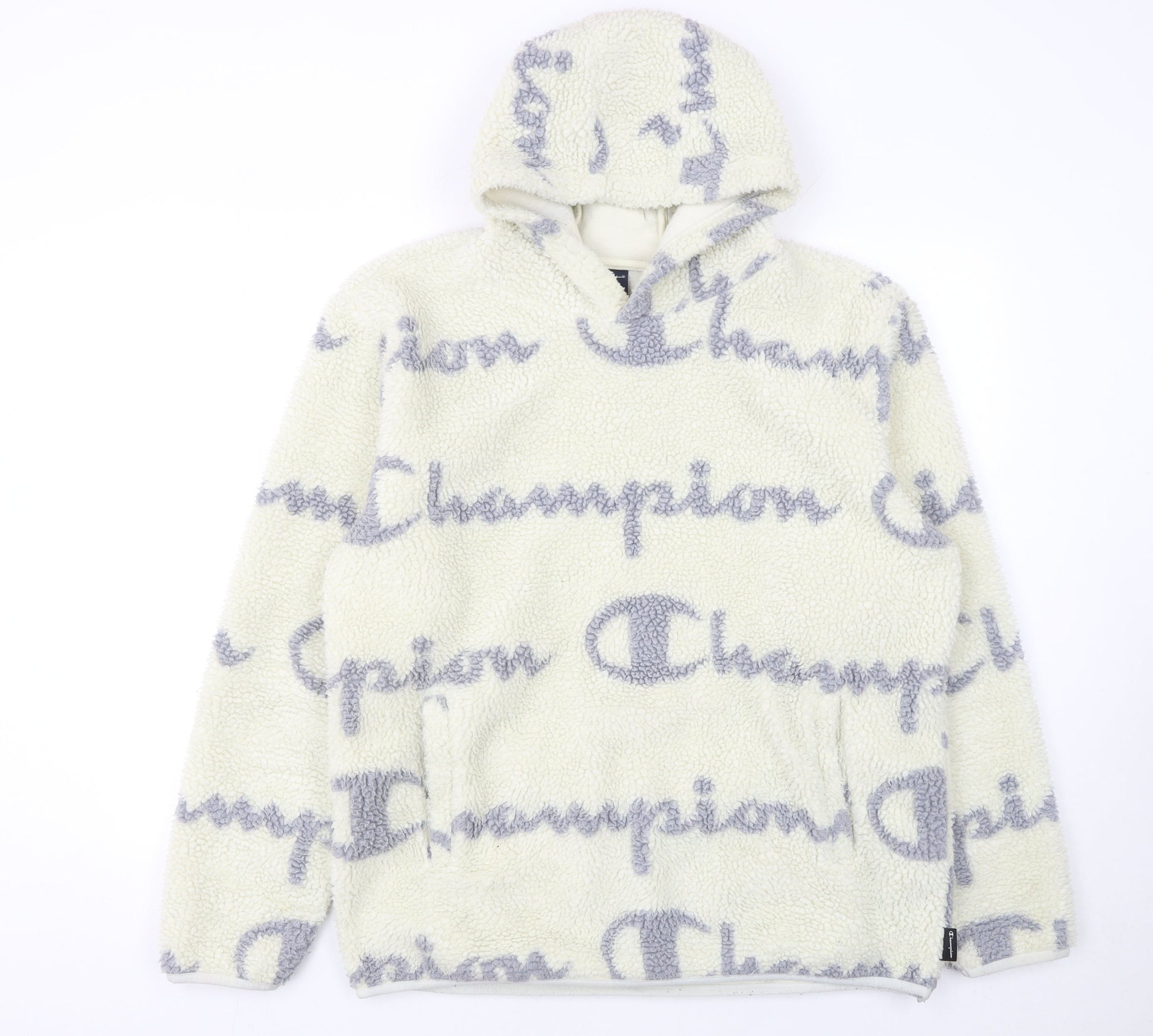 Champion Men's Ivory Fleece Pullover Hoodie Size L Logo Print