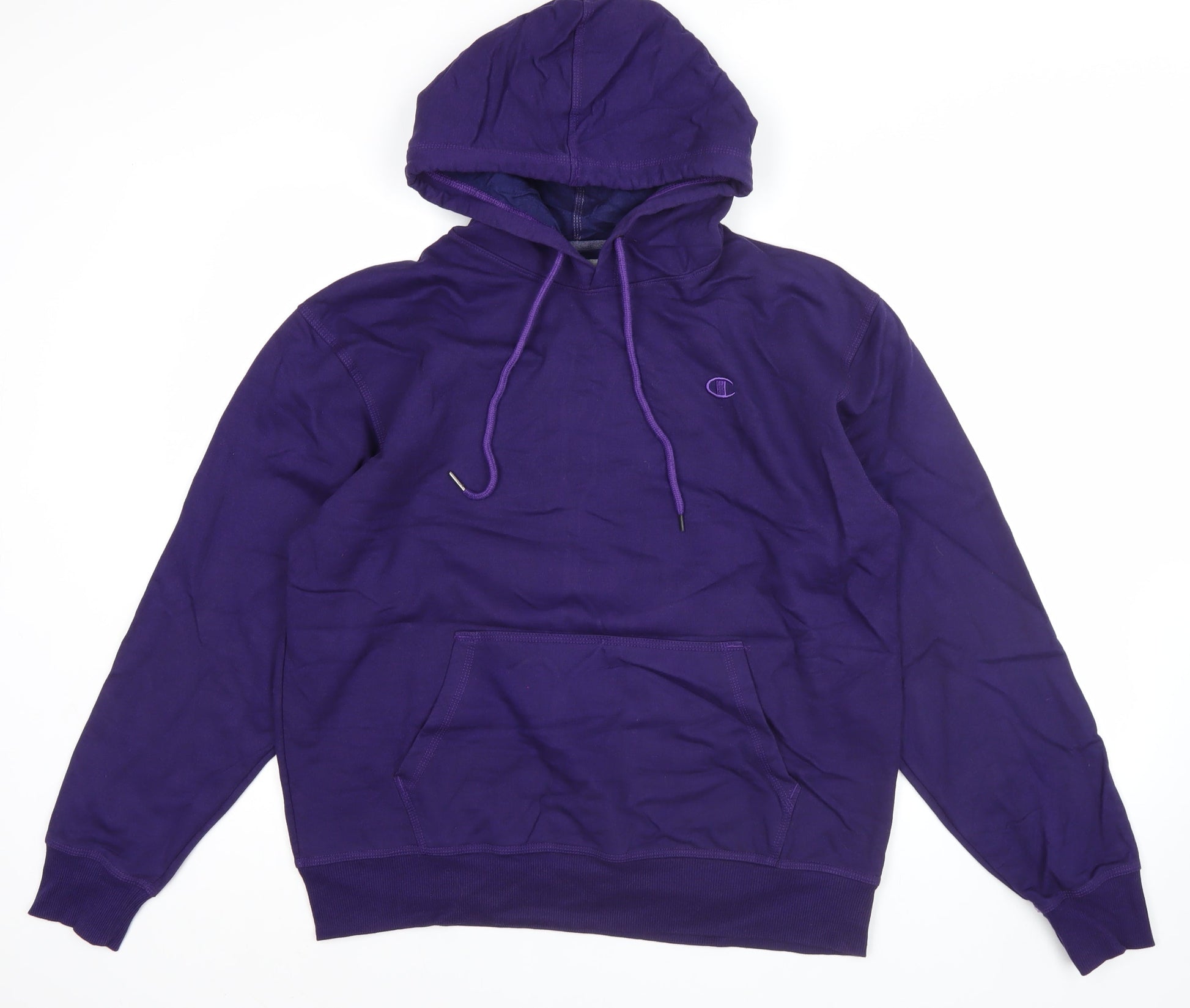 Champion Men's Purple Pullover Hoodie L Logo Fleece Cotton Blend