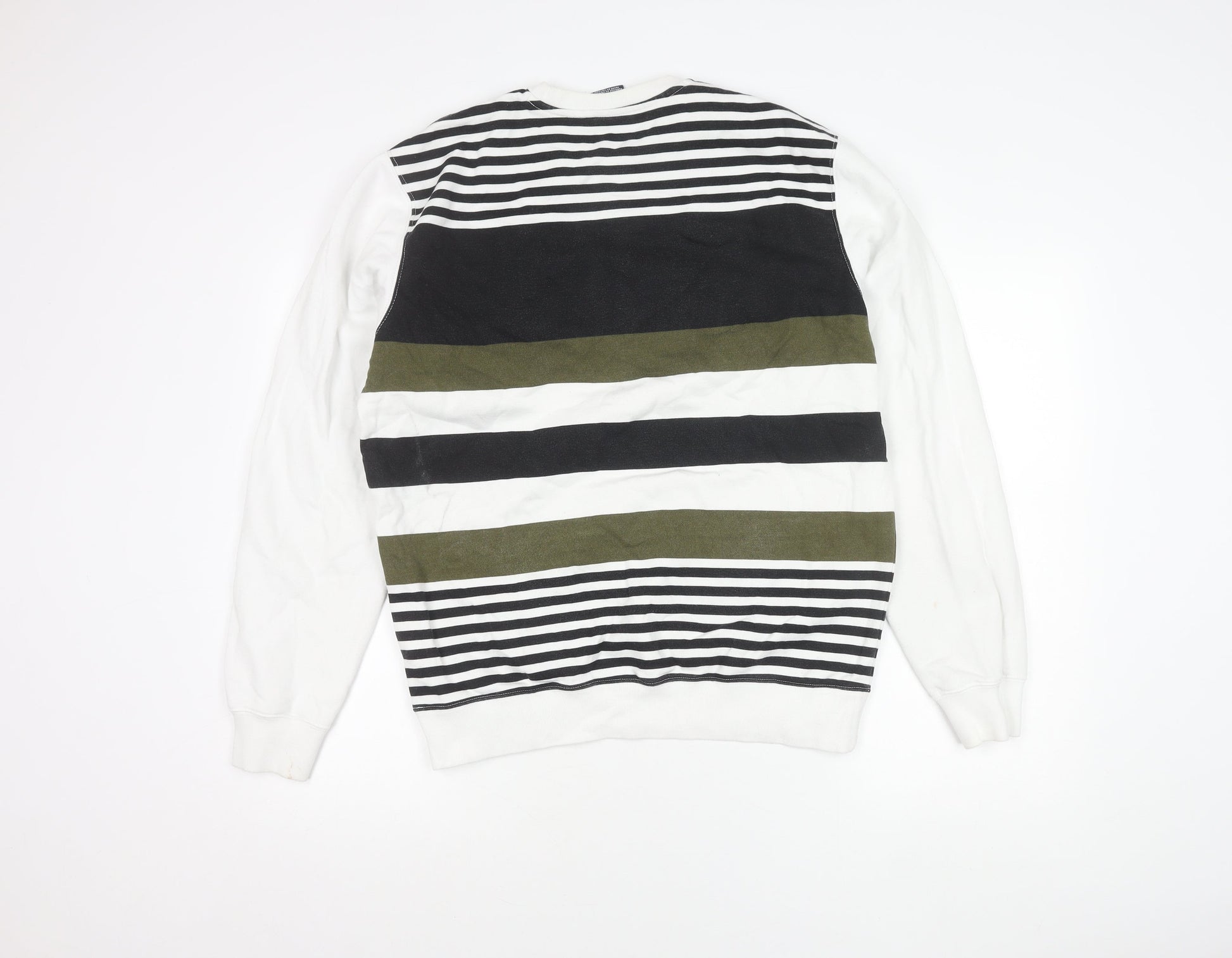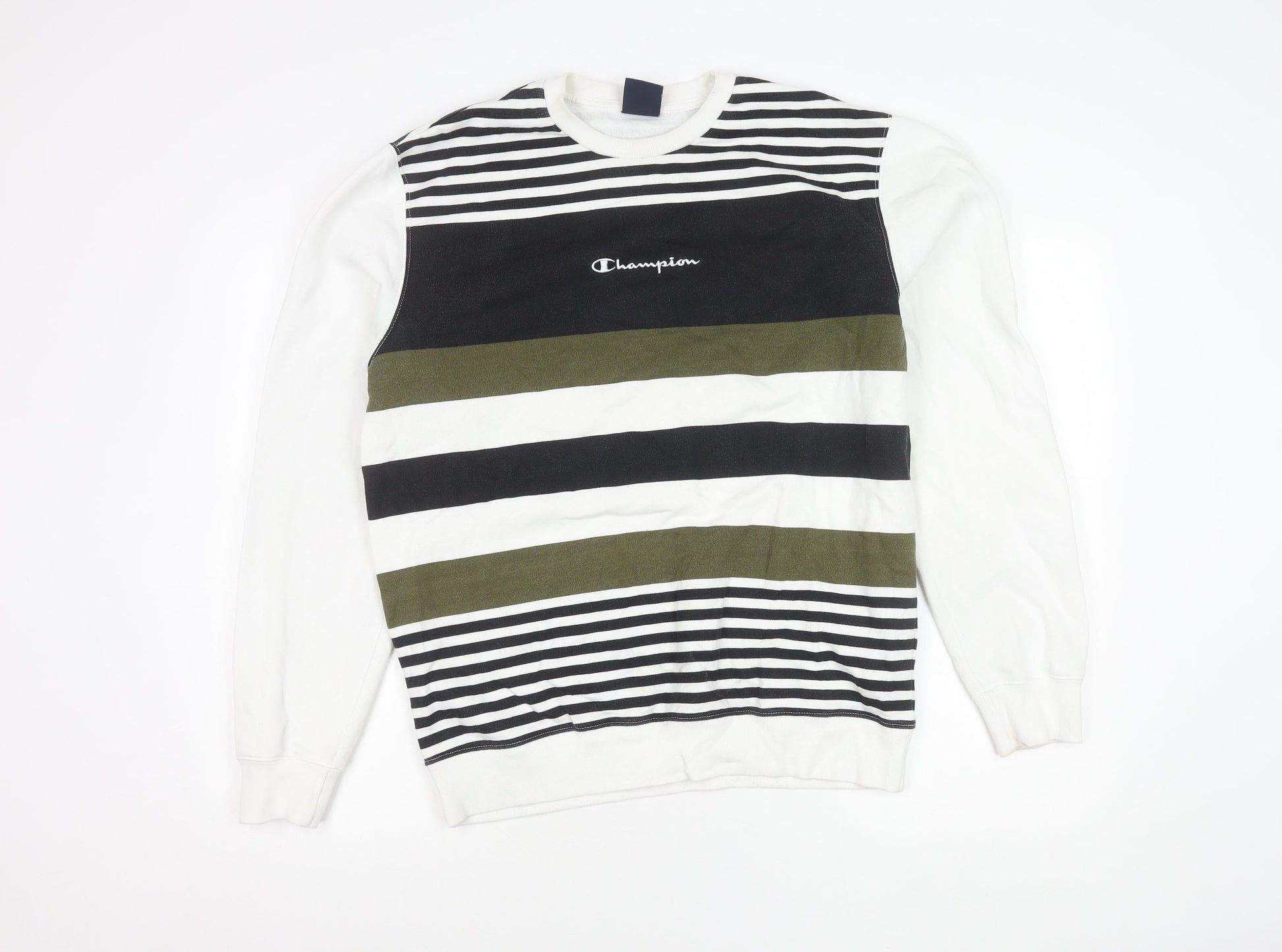 Champion Men's Striped Sweatshirt White Black Green Medium Pullover