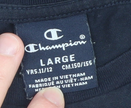 Champion Teens Black Large Crew Neck Short Sleeve Cotton Sports T-Shirt