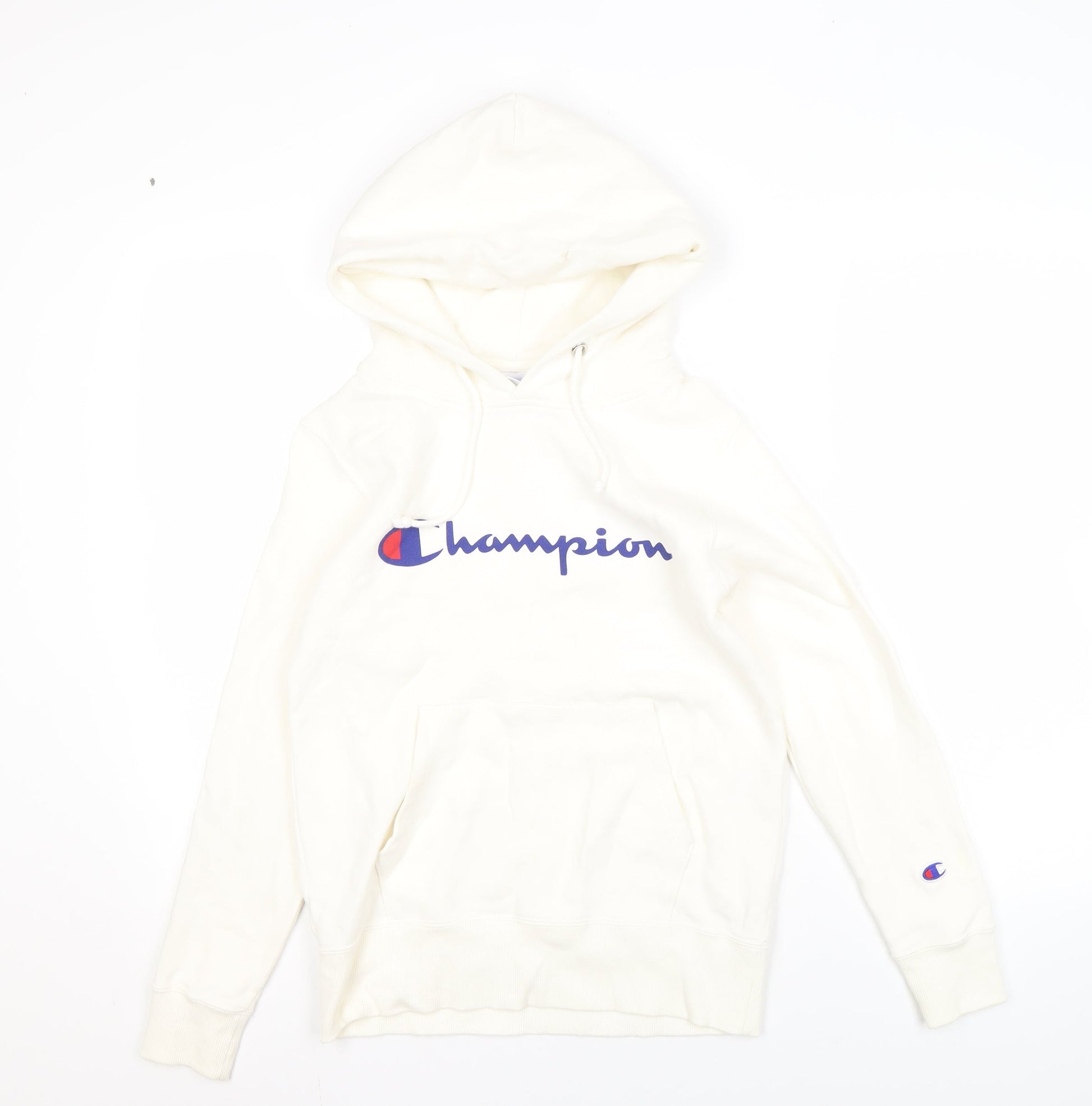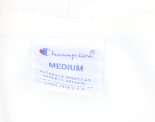 Champion Unisex White Hoodie M - Logo, Casual, Fleece