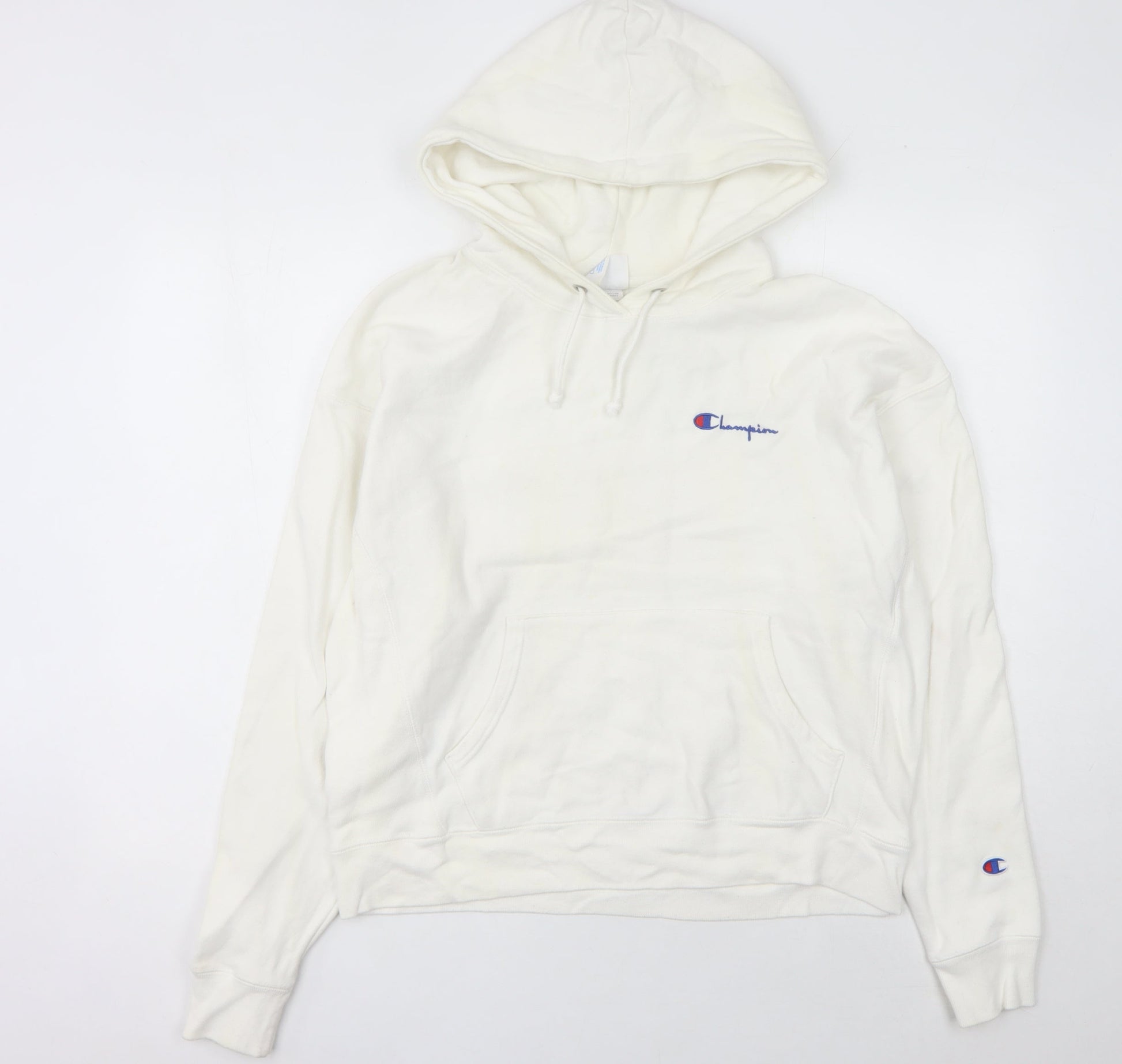Champion Women’s White Hoodie L Pullover Logo Cotton Blend