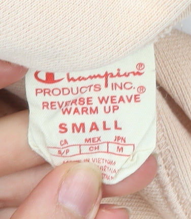 Champion Womens Beige Small Pullover Hoodie Embroidered Logo