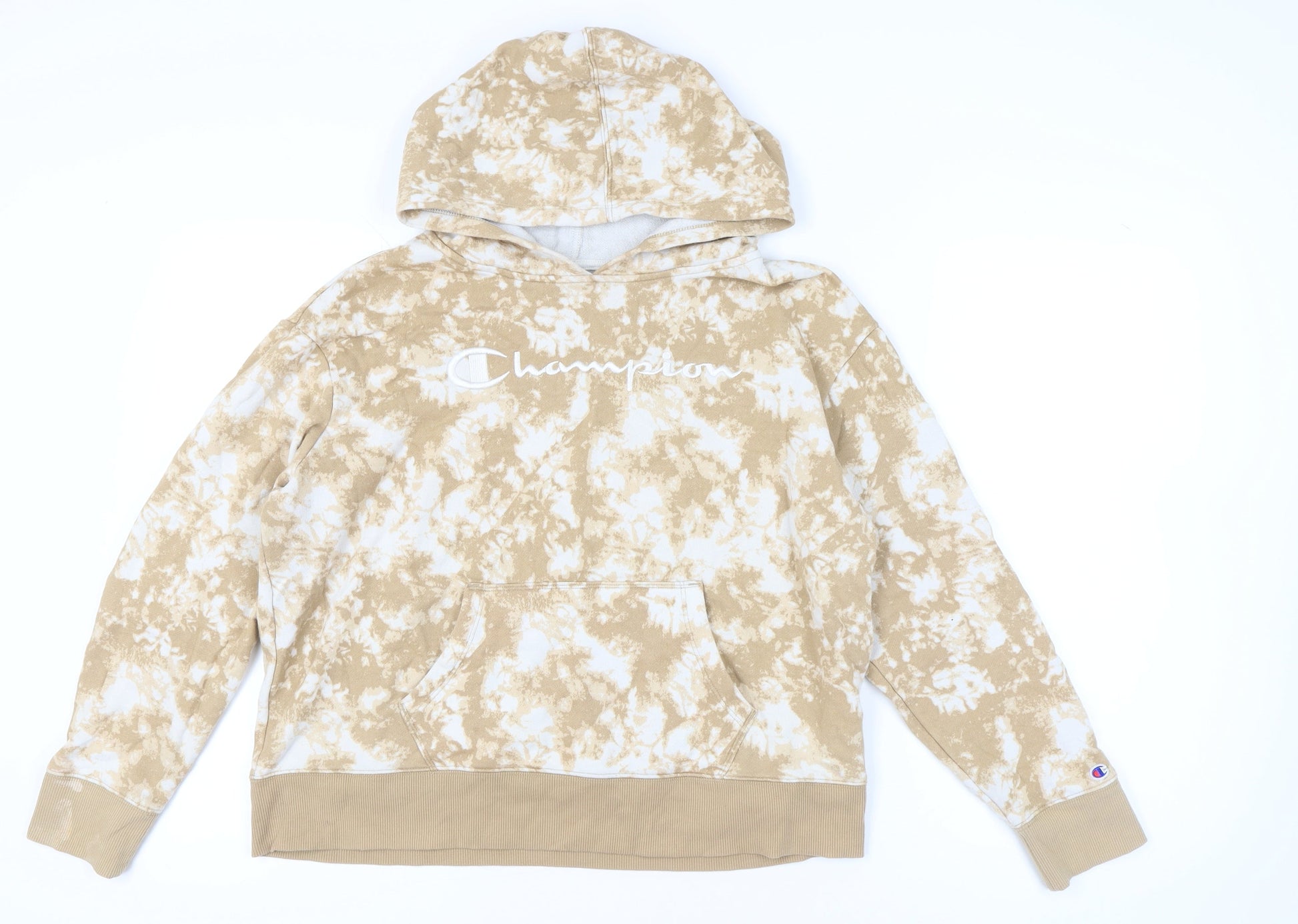 Champion Womens Beige Tie Dye Pullover Hoodie Size L Logo Casual
