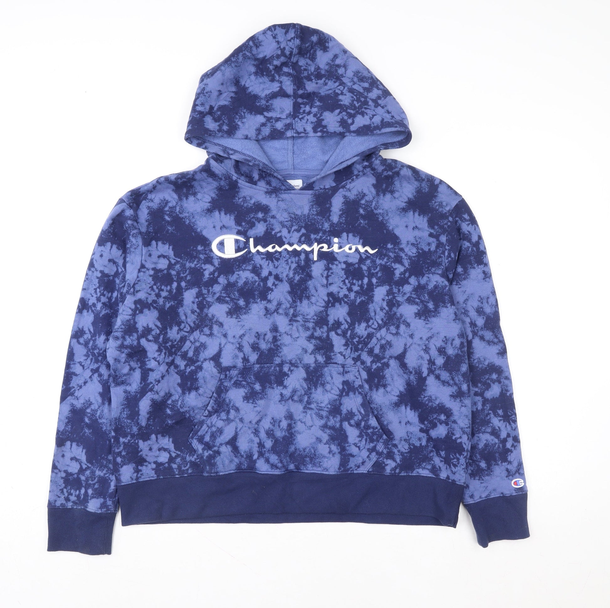 Champion Womens Blue Tie-Dye Pullover Hoodie Size L Cotton Blend