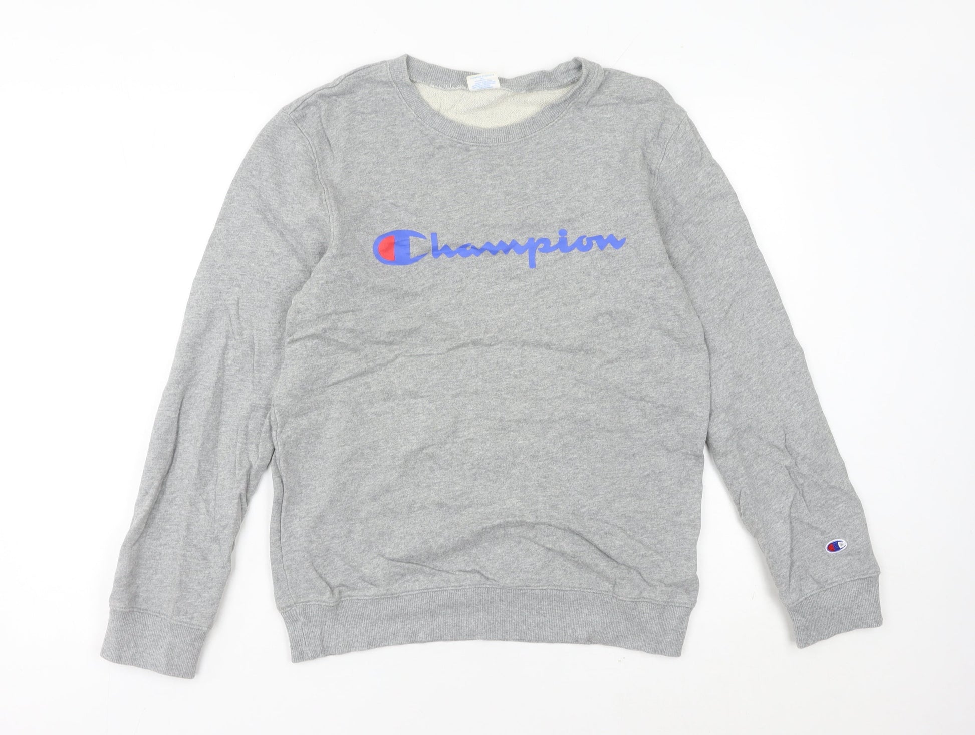 Champion Womens Grey Pullover Sweatshirt L Logo Athletic Casual
