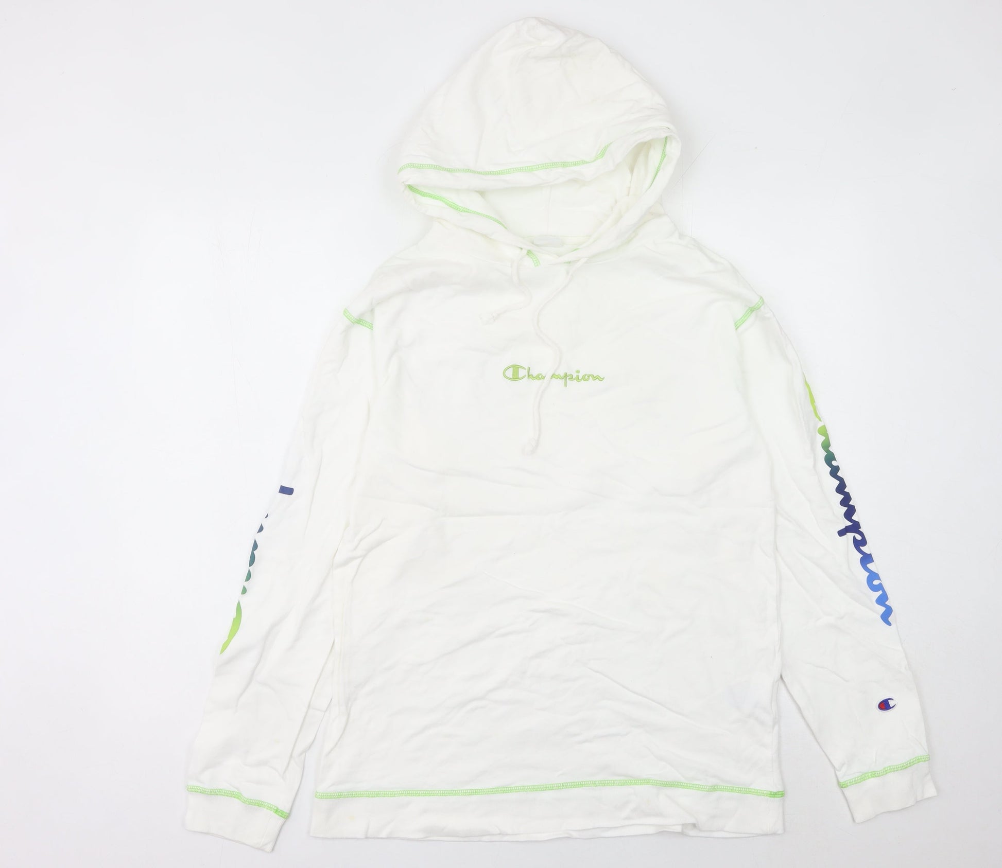 Champion Women's White Pullover Hoodie UK 10 Logo Print Long Sleeve