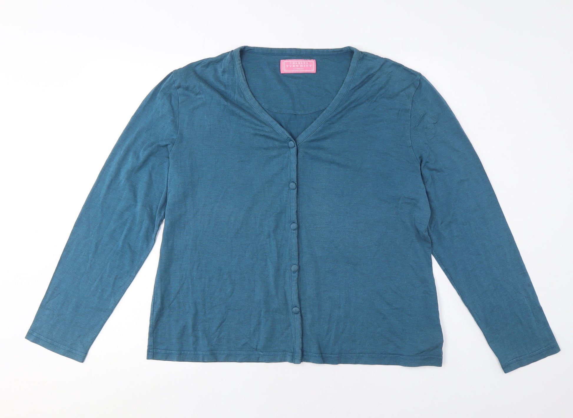 Charles Tyrwhitt Blue Silk Cotton V-Neck Blouse, L
