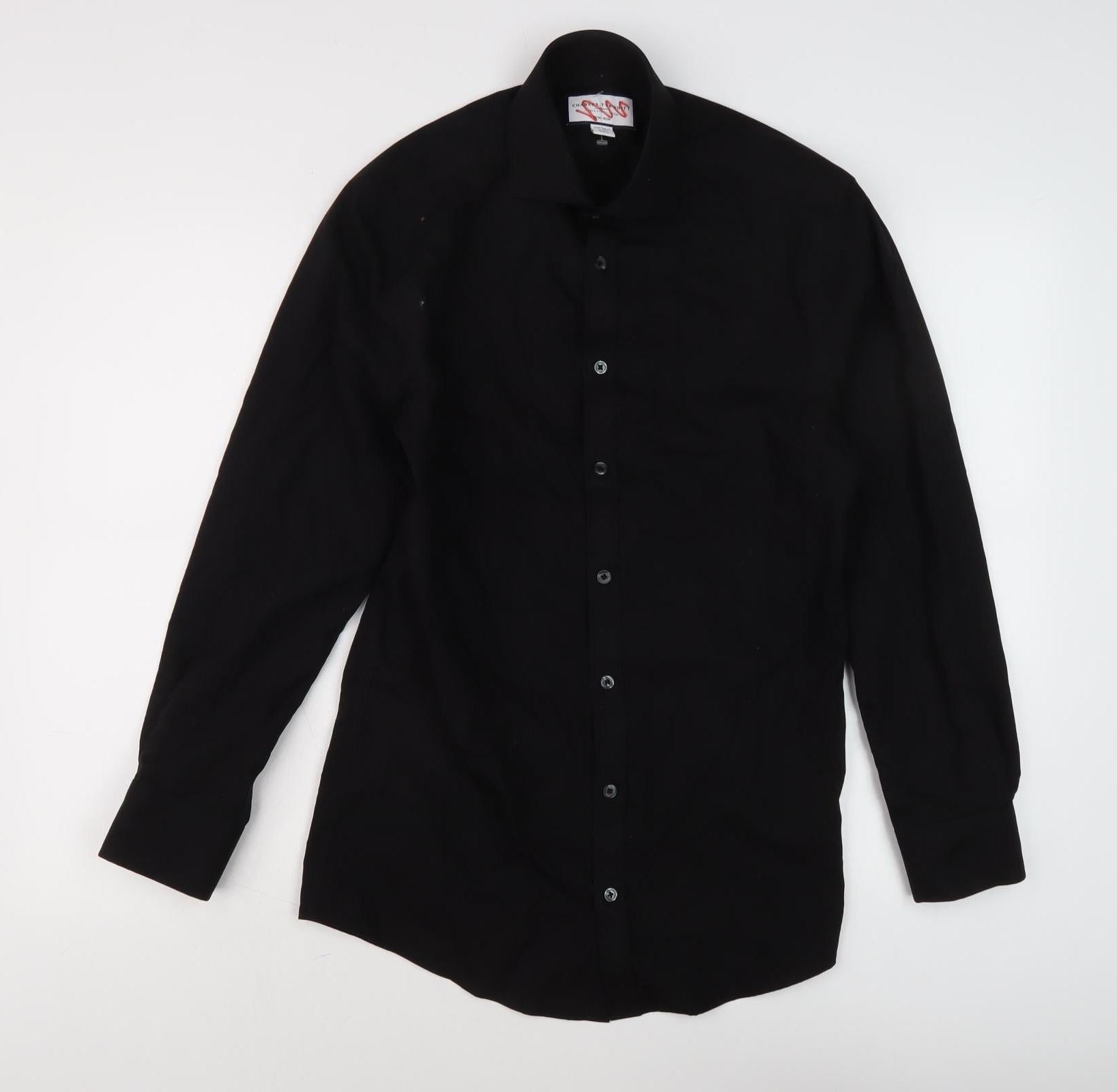Charles Tyrwhitt Men's Black Dress Shirt, 38 cm, Extra Slim